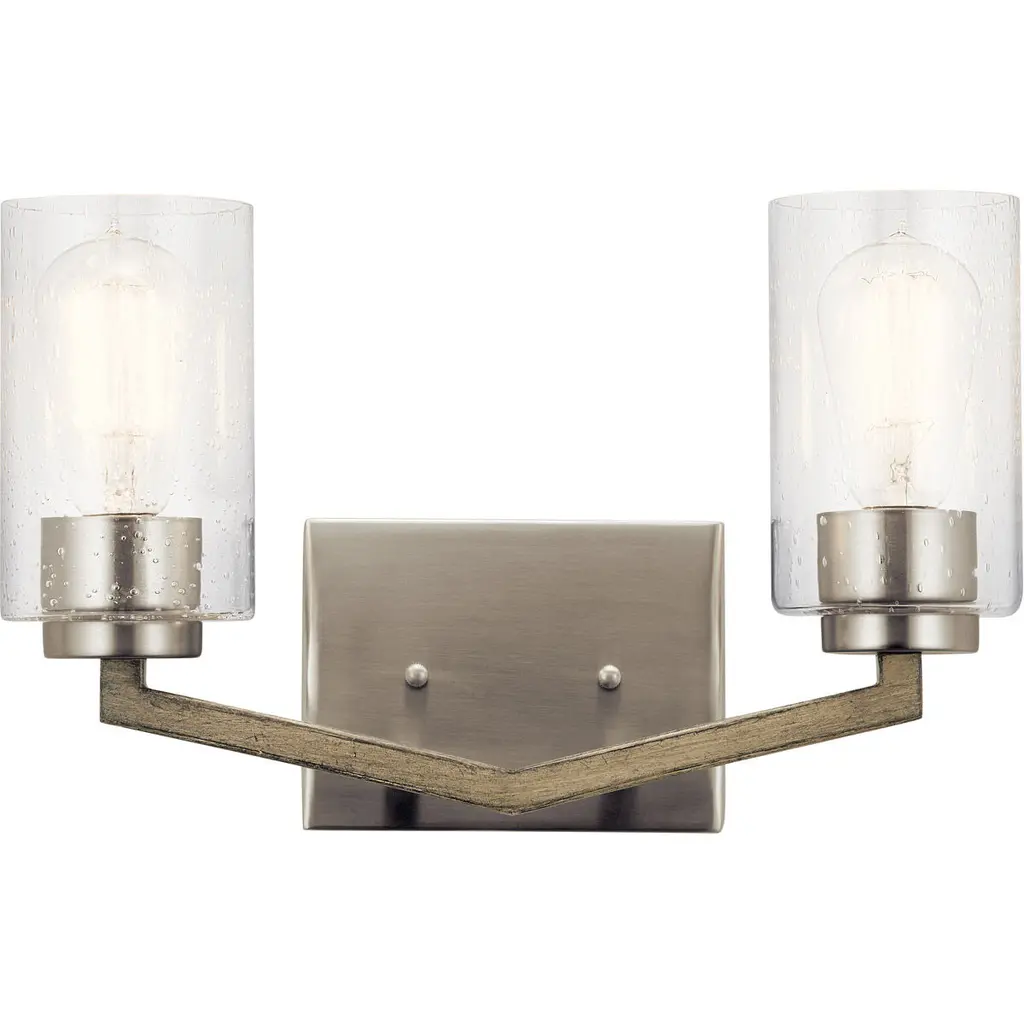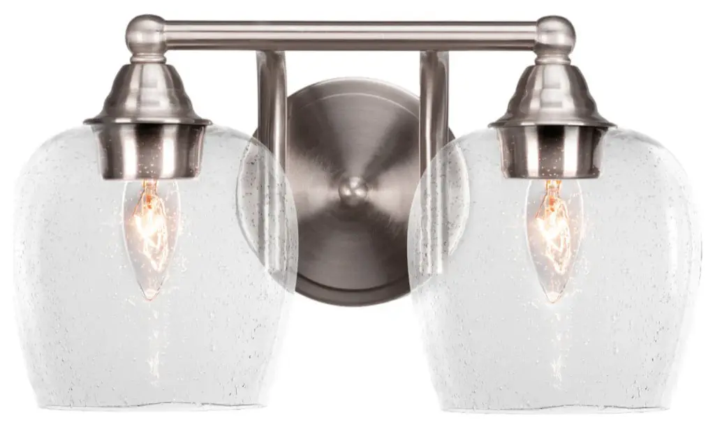 Paramount 2-Light Bath Bar, Brushed Nickel, 6" Clear Bubble Glass