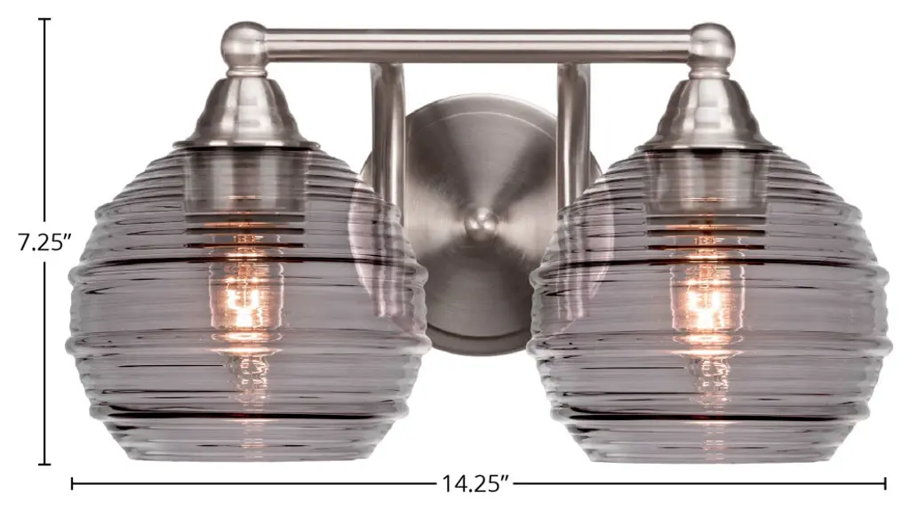 Paramount 2-Light Bath Bar, Brushed Nickel, 6" Smoke Ribbed Glass
