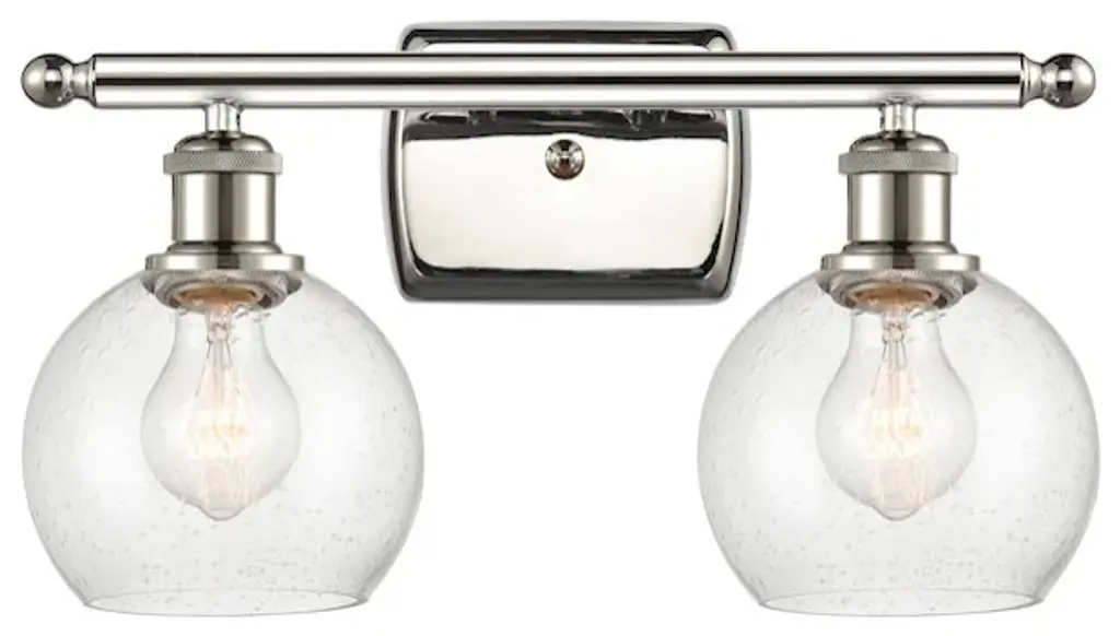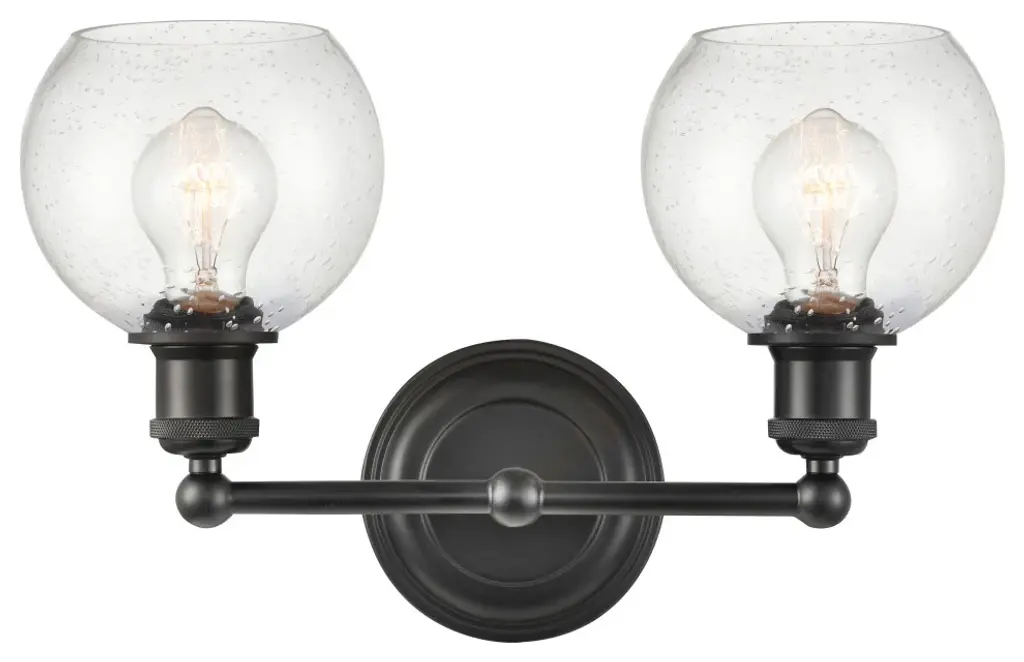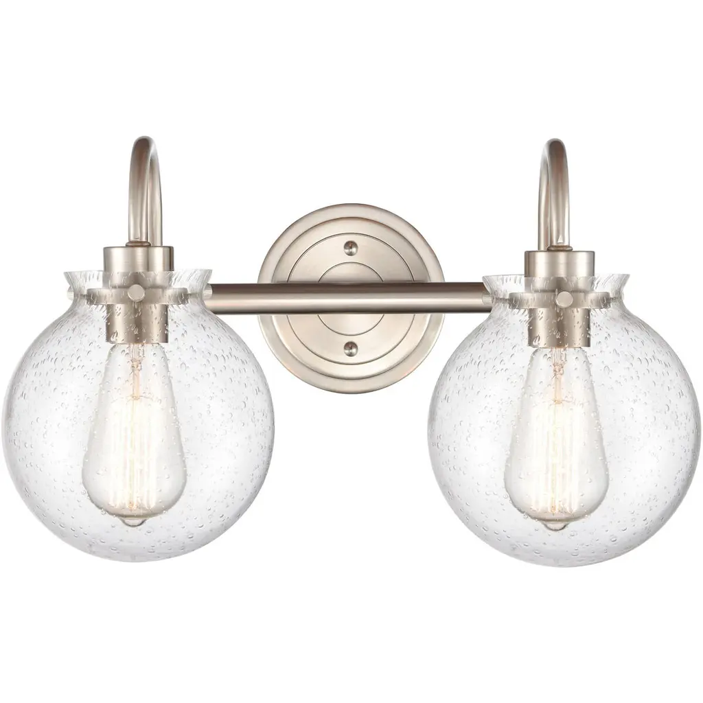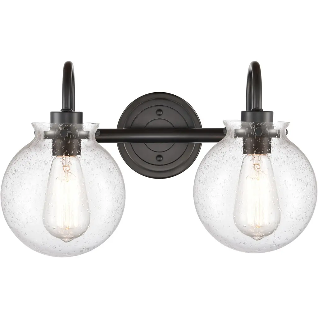 Paramount 2-Light Bath Bar, Matte Black & Brushed Nickel, 5.75" Clear Bubble