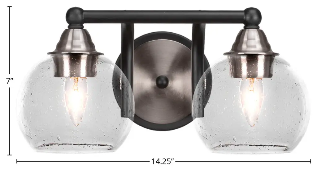 Upgrade your space effortlessly with the Paramount 2-Light Bath Bar. Installation is a breeze - simply connect to a 120 volt power supply and enjoy. Customize your desired ambiance with a dimmable lighting feature (dimmer not included). This bath bar is energy-efficient and LED-compatible, ensuring lasting and efficient illumination. Enjoy the versatility it offers, as it is compatible with standard medium base bulbs. Maintenance is minimal, requiring only a damp cloth - do not use any chemical cleaners - thanks to its streamlined hardwired design. Choose from multiple finish, color, and glass size variations to suit your preferences.Features:• Easy to install and use with a 120 volt power supply• Dimmable lighting option for your convenience (dimmer not included)• Energy-efficient and LED-compatible for long-lasting illumination• Compatible with all standard medium base bulbs• Easily maintain cleanliness with a damp cloth - do not use any chemical cleaners• Streamlined installation and seamless integration with hardwired design• Glass shade construction is durable and ensures even light diffusion• Available in multiple finish, color, and glass size variationsGeneral Information:• Dimmable: Yes• Dimensions:Bath Bar Light• Assembled Product: 14.25 inches wide x 7.75 inches deep x 7 inches high• Shade Width: 5.75 inchesRequirements:• Bulb Type: LED Bulb, Incandescent• For over 40 years, Toltec Lighting has been dedicated to creating extraordinary lighting experiences for our customers. Our extensive online catalogue showcases a diverse range of contemporary and timeless collections, offering over 40 glass shade choices to personalize each fixture to your unique taste. Whether you seek traditional, transitional, or contemporary styles, our fixtures effortlessly complement any decor. With an unwavering commitment to quality, value, and exceptional service, we prioritize your satisfaction by ensuring hassle-free transactions. Toltec Lighting stands proudly as a beacon of reliability and brilliance, and we look forward to illuminating your home for years to come.