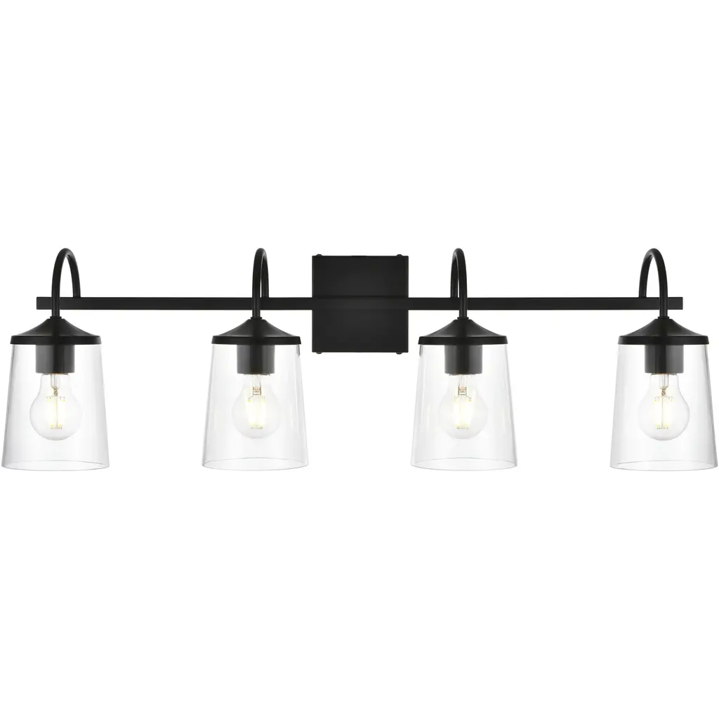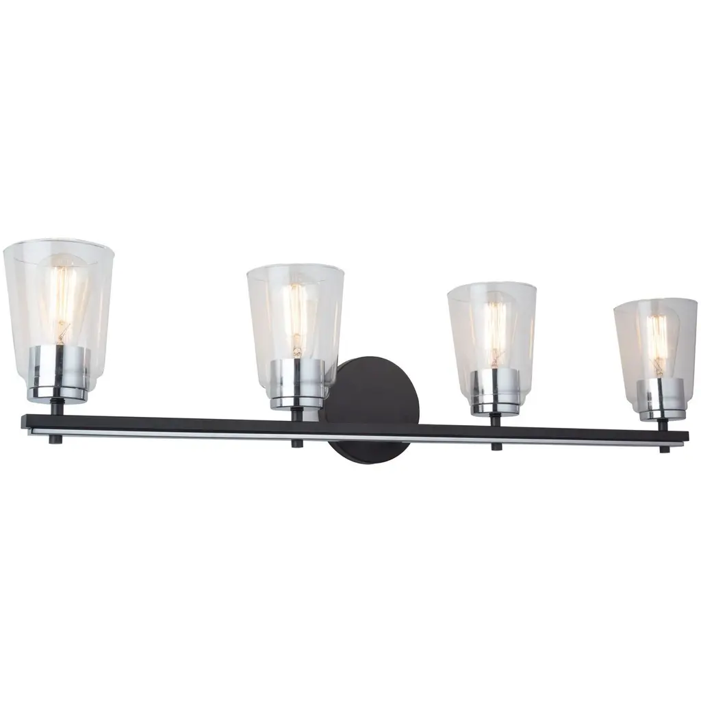 Paramount 4-Light Bath Bar, Matte Black, 4.5" Clear Bubble Glass