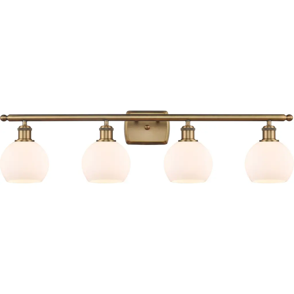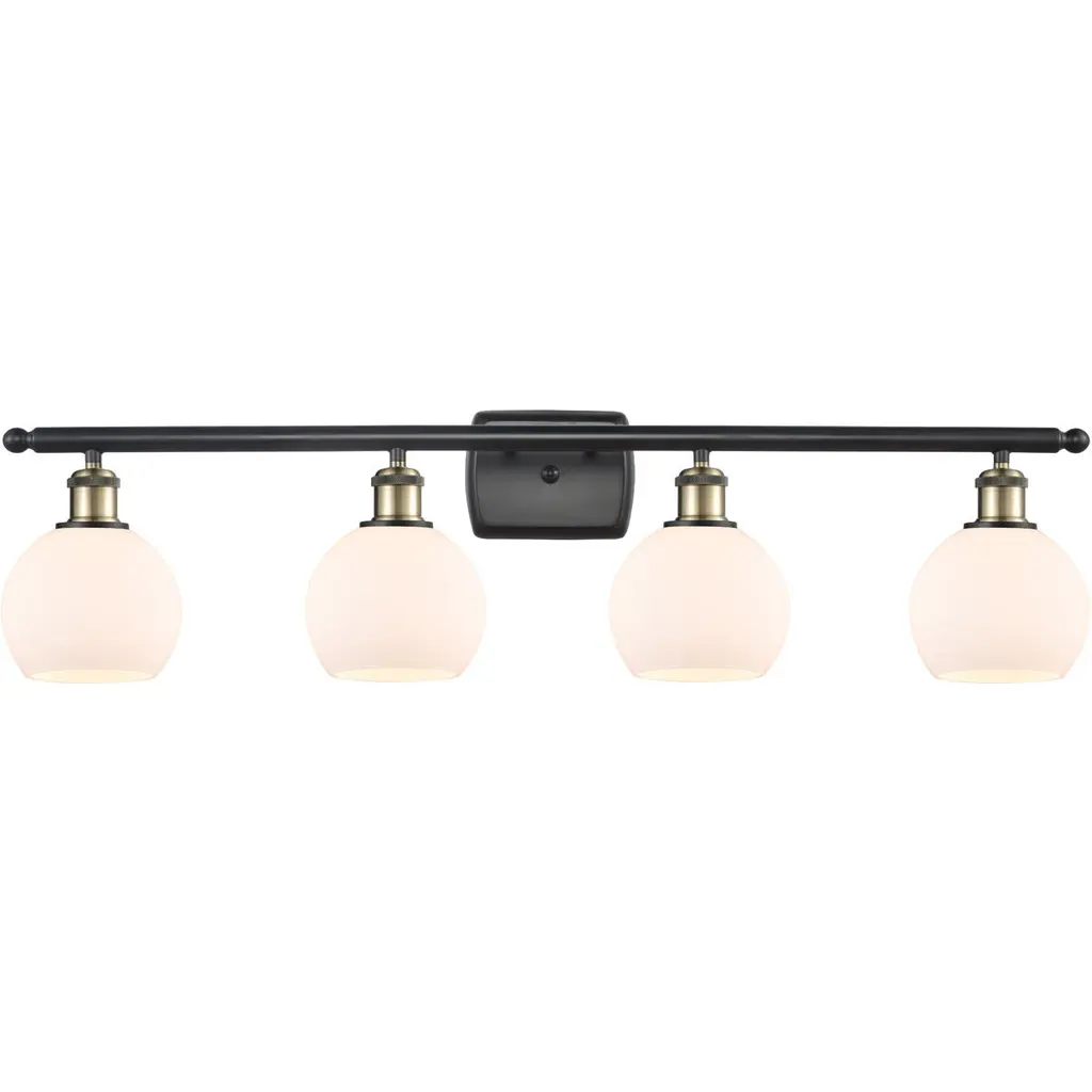Paramount 4-Light Bath Bar, Matte Black & Brass, 5.75" White Marble Glass