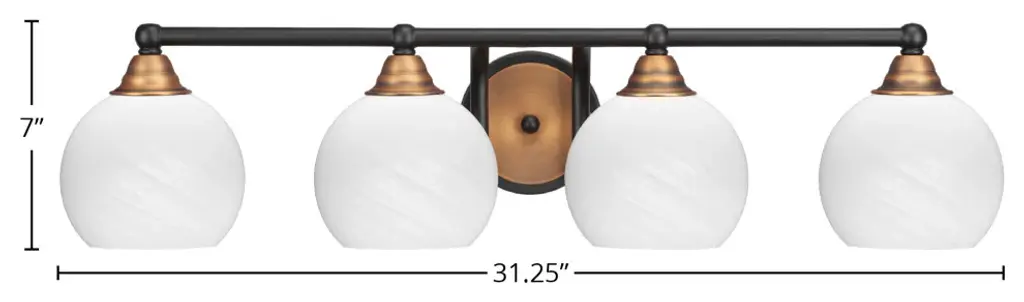 Upgrade your space effortlessly with the Paramount 4-Light Bath Bar. Installation is a breeze - simply connect to a 120 volt power supply and enjoy. Customize your desired ambiance with a dimmable lighting feature (dimmer not included). This bath bar is energy-efficient and LED-compatible, ensuring lasting and efficient illumination. Enjoy the versatility it offers, as it is compatible with standard medium base bulbs. Maintenance is minimal, requiring only a damp cloth - do not use any chemical cleaners - thanks to its streamlined hardwired design. Choose from multiple finish, color, and glass size variations to suit your preferences.Features:• Easy to install and use with a 120 volt power supply• Dimmable lighting option for your convenience (dimmer not included)• Energy-efficient and LED-compatible for long-lasting illumination• Compatible with all standard medium base bulbs• Easily maintain cleanliness with a damp cloth - do not use any chemical cleaners• Streamlined installation and seamless integration with hardwired design• Glass shade construction is durable and ensures even light diffusion• Available in multiple finish, color, and glass size variationsGeneral Information:• Dimmable: Yes• Dimensions:Bath Bar Light• Assembled Product: 31.25 inches wide x 7.75 inches deep x 7 inches high• Shade Width: 5.75 inchesRequirements:• Bulb Type: LED Bulb, Incandescent• For over 40 years, Toltec Lighting has been dedicated to creating extraordinary lighting experiences for our customers. Our extensive online catalogue showcases a diverse range of contemporary and timeless collections, offering over 40 glass shade choices to personalize each fixture to your unique taste. Whether you seek traditional, transitional, or contemporary styles, our fixtures effortlessly complement any decor. With an unwavering commitment to quality, value, and exceptional service, we prioritize your satisfaction by ensuring hassle-free transactions. Toltec Lighting stands proudly as a beacon of reliability and brilliance, and we look forward to illuminating your home for years to come.