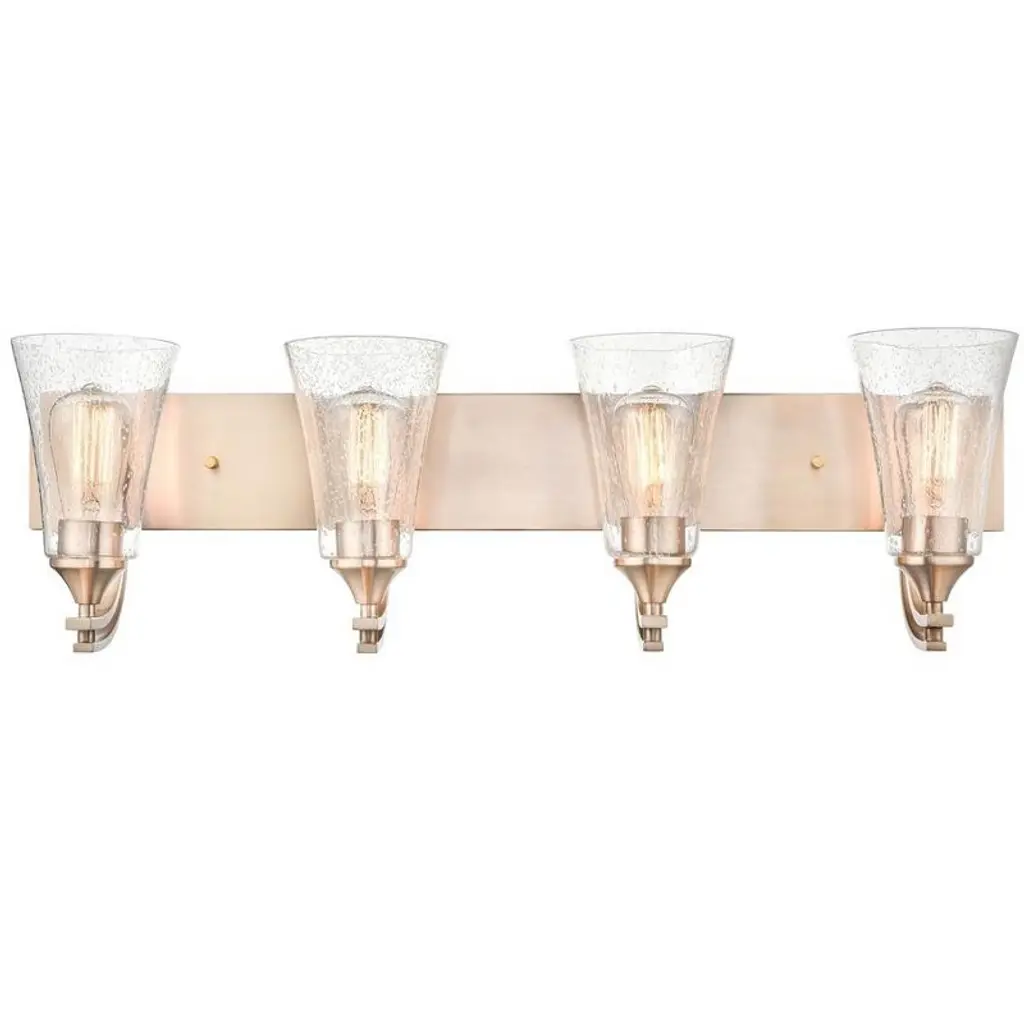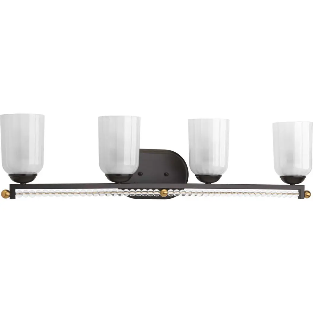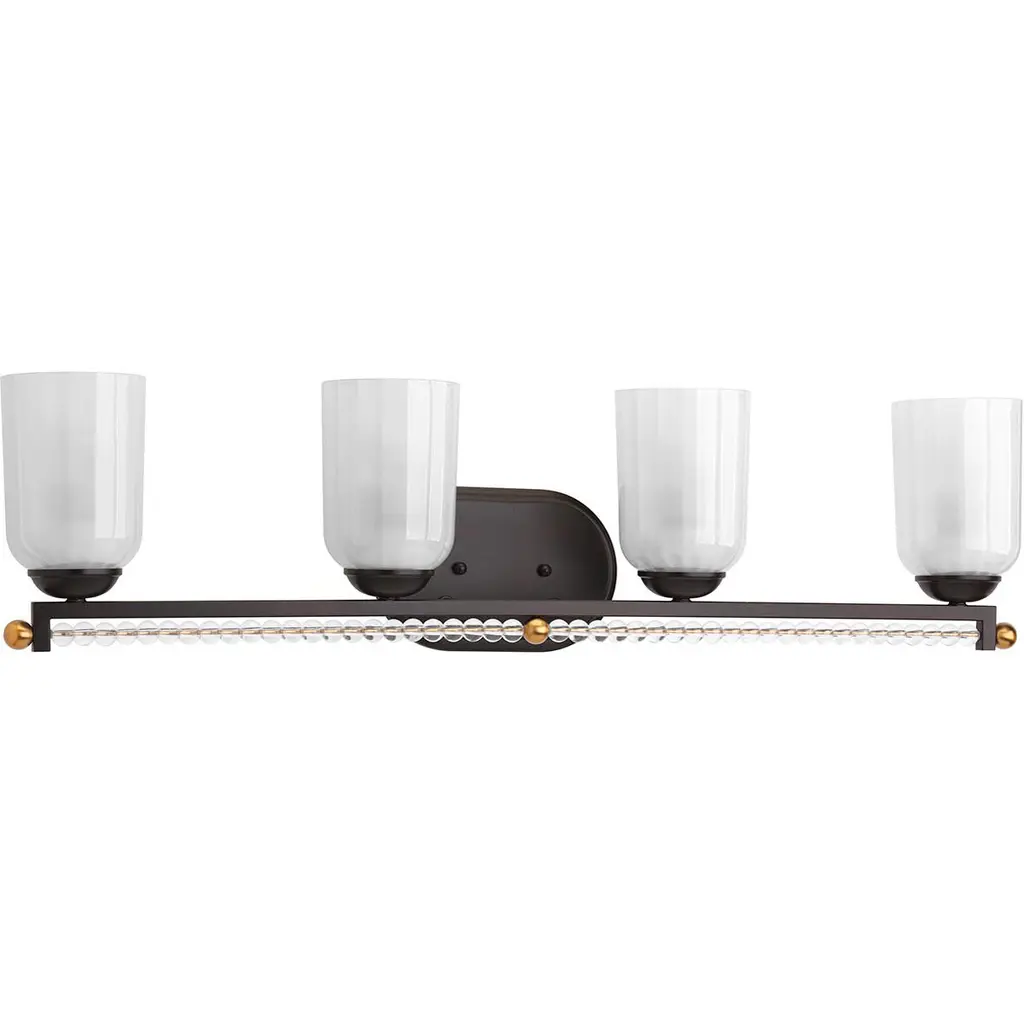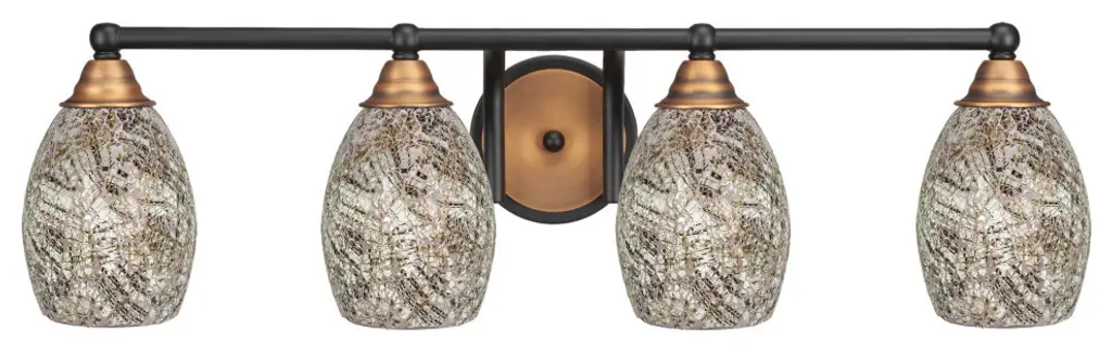 Upgrade your space effortlessly with the Paramount 4-Light Bath Bar. Installation is a breeze - simply connect to a 120 volt power supply and enjoy. Customize your desired ambiance with a dimmable lighting feature (dimmer not included). This bath bar is energy-efficient and LED-compatible, ensuring lasting and efficient illumination. Enjoy the versatility it offers, as it is compatible with standard medium base bulbs. Maintenance is minimal, requiring only a damp cloth - do not use any chemical cleaners - thanks to its streamlined hardwired design. Choose from multiple finish, color, and glass size variations to suit your preferences.Features:• Easy to install and use with a 120 volt power supply• Dimmable lighting option for your convenience (dimmer not included)• Energy-efficient and LED-compatible for long-lasting illumination• Compatible with all standard medium base bulbs• Easily maintain cleanliness with a damp cloth - do not use any chemical cleaners• Streamlined installation and seamless integration with hardwired design• Glass shade construction is durable and ensures even light diffusion• Available in multiple finish, color, and glass size variationsGeneral Information:• Dimmable: Yes• Dimensions:Bath Bar Light• Assembled Product: 30.25 inches wide x 7 inches deep x 8.25 inches high• Shade Width: 5 inchesRequirements:• Bulb Type: LED Bulb, Incandescent• For over 40 years, Toltec Lighting has been dedicated to creating extraordinary lighting experiences for our customers. Our extensive online catalogue showcases a diverse range of contemporary and timeless collections, offering over 40 glass shade choices to personalize each fixture to your unique taste. Whether you seek traditional, transitional, or contemporary styles, our fixtures effortlessly complement any decor. With an unwavering commitment to quality, value, and exceptional service, we prioritize your satisfaction by ensuring hassle-free transactions. Toltec Lighting stands proudly as a beacon of reliability and brilliance, and we look forward to illuminating your home for years to come.