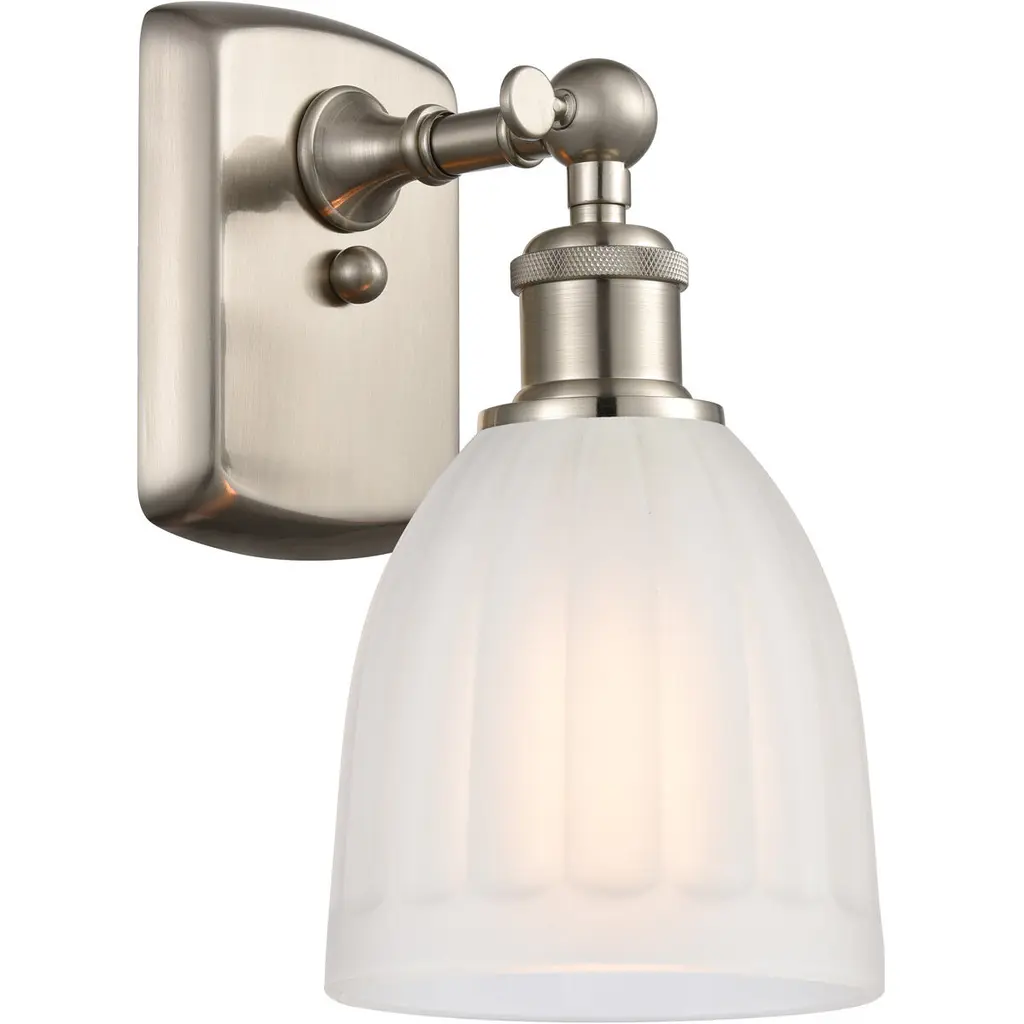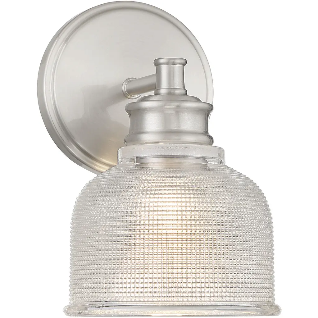 Paramount Wall Sconce, Brushed Nickel, 5" Clear Ribbed Glass