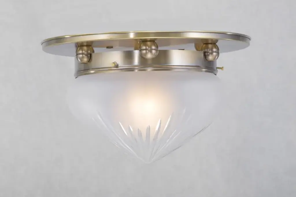 Paris 20 is a ceiling lamp made of brass available in different finishes.Finishes: Antique, Shiny brass, Matt brass, Shiny nickel, Matt nickel1x75 W E27This is a little, feminine collection which consists of a pendant decorated with three little glass balls, ceiling fittings and three matching wall lights. The dimensions of these lamps make them ideal for installing even in smaller living space.Finishes: antique, shiny brass, nickel