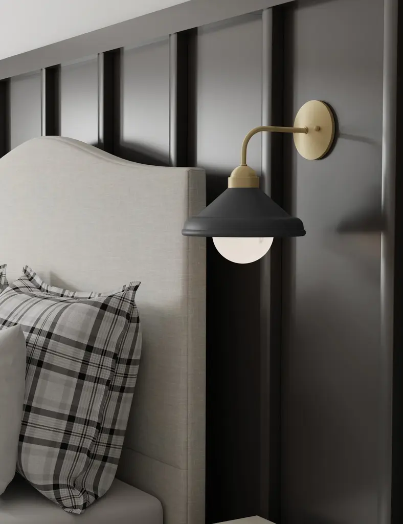 Finding lighting elements that balance farmhouse charm with a clean sophistication can be a challenge. That's why we love this Parish sconce. With its timeless shape and gold leaf interior, this sconce light is perfect for a modern farmhouse look or for bringing simple, elegant illumination to a collected aesthetic.