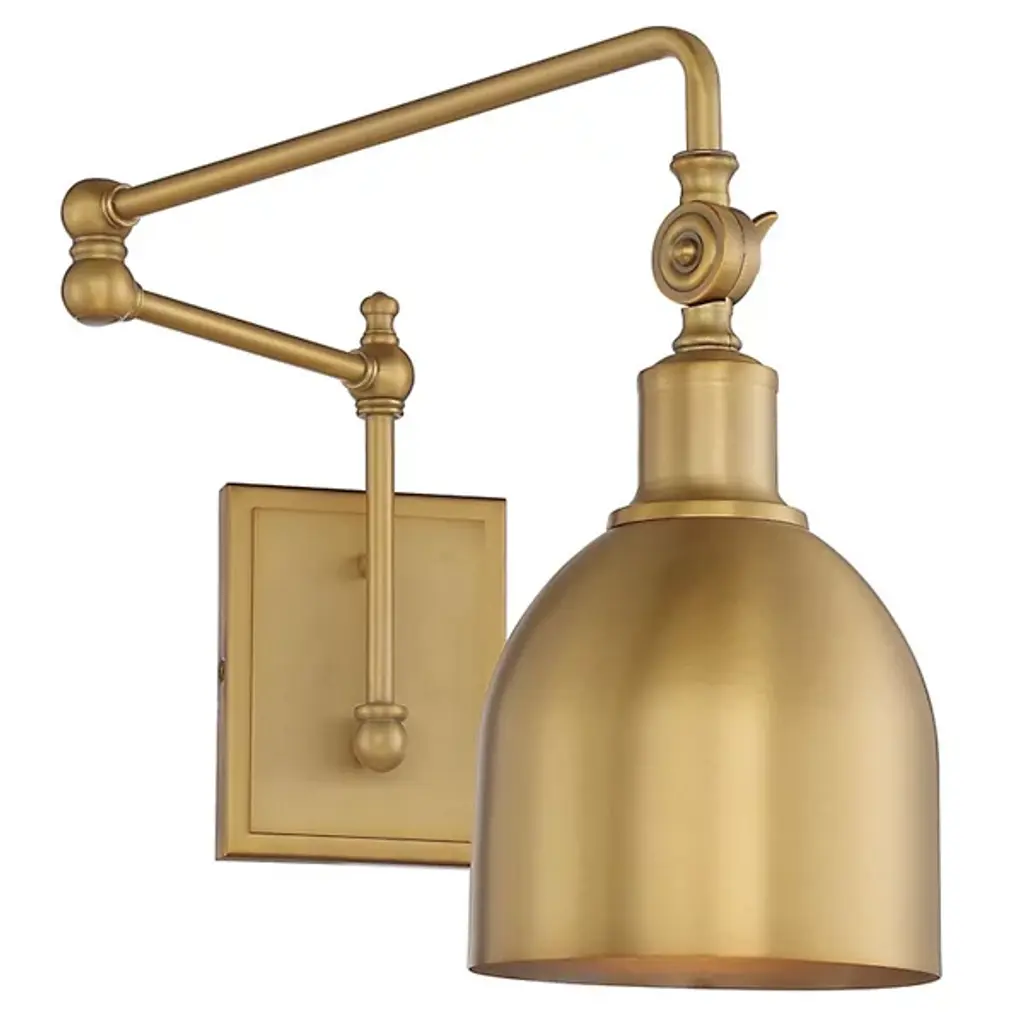An inspired design with a subtle, vintage style. The Parkington Adjustable Wall Sconce from Visual Comfort Signature, formerly known as Visual Comfort, extends a double-jointed arm from a smooth, stepped steel wall plate with a toggle switch, terminating in a contoured, cylindrical housing for damp-listed lamping. This powerful display is adroitly moderated by a clear glass shade secured by a sleek metal collar that extends four small, strong pegs as an outward accent, casting a focused wash of task light wherever it is needed.