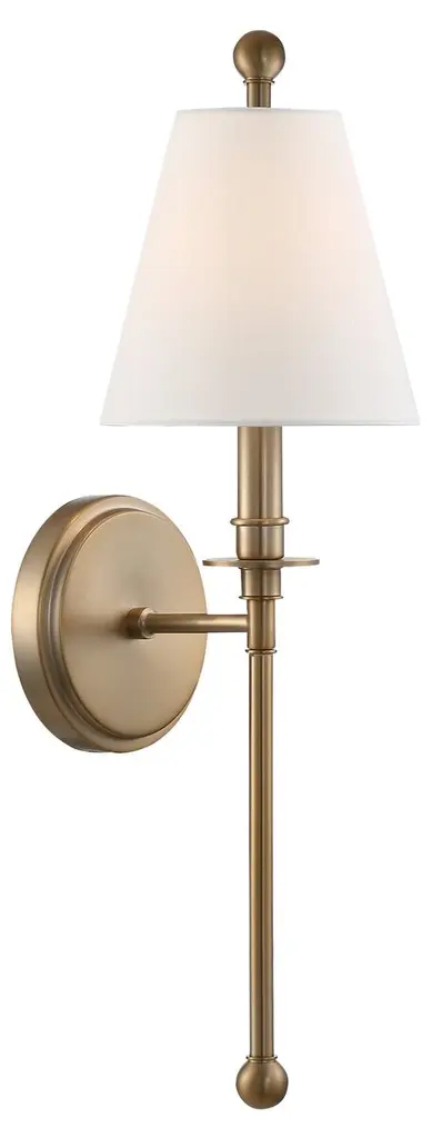 Add a tasteful and expressive appeal to interiors with the Parkington Tail Wall Sconce from Visual Comfort Signature. A contoured circular wall plate keeps the fixture in place, sending out a short bar to an elegant, accented stem. The industrial simplicity of the brass material keeps clean lines, extending a strong, damp-listed lamp beneath a flaring shade.