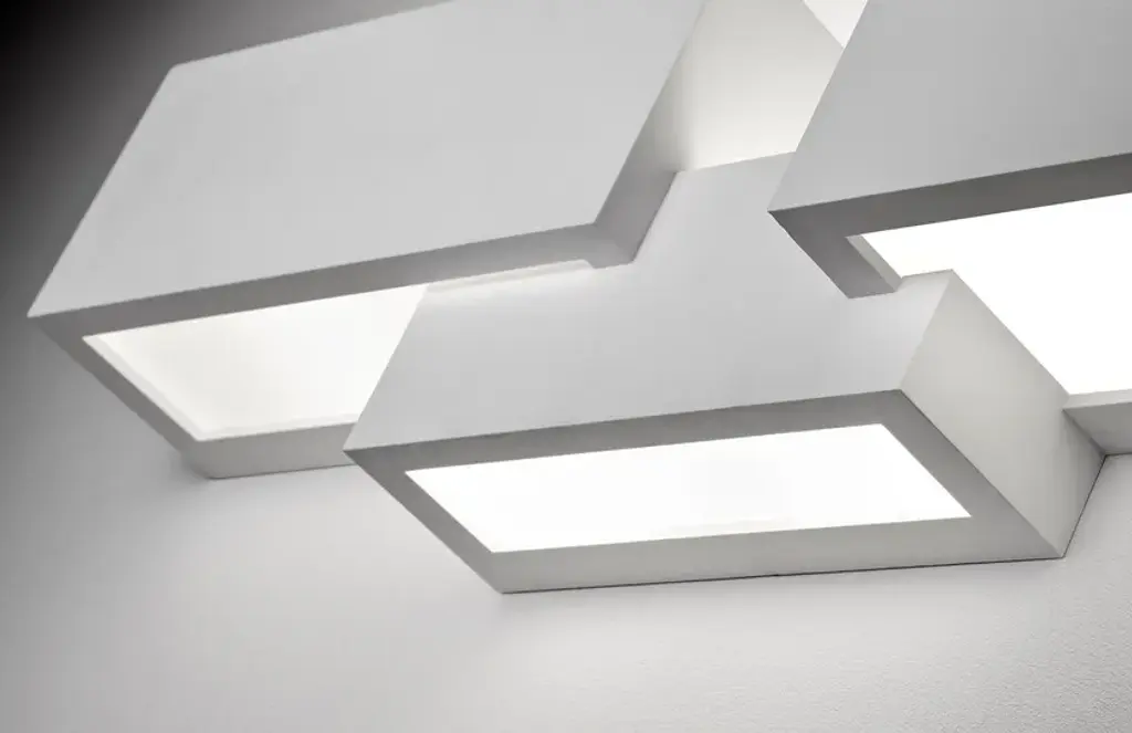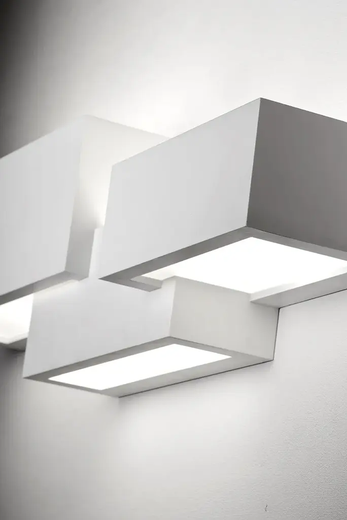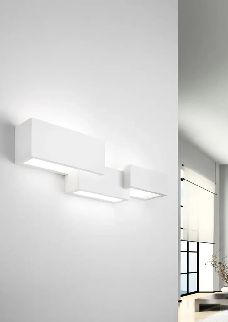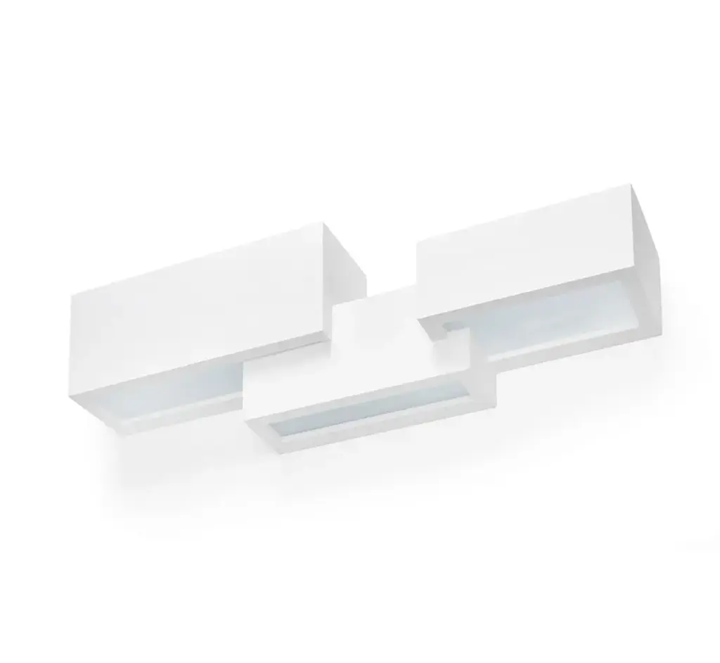 Paro is a plaster wall lamp with 3 lights with double emission for direct and indirect lighting. Bulb type: halogen, fluorescent or LED.