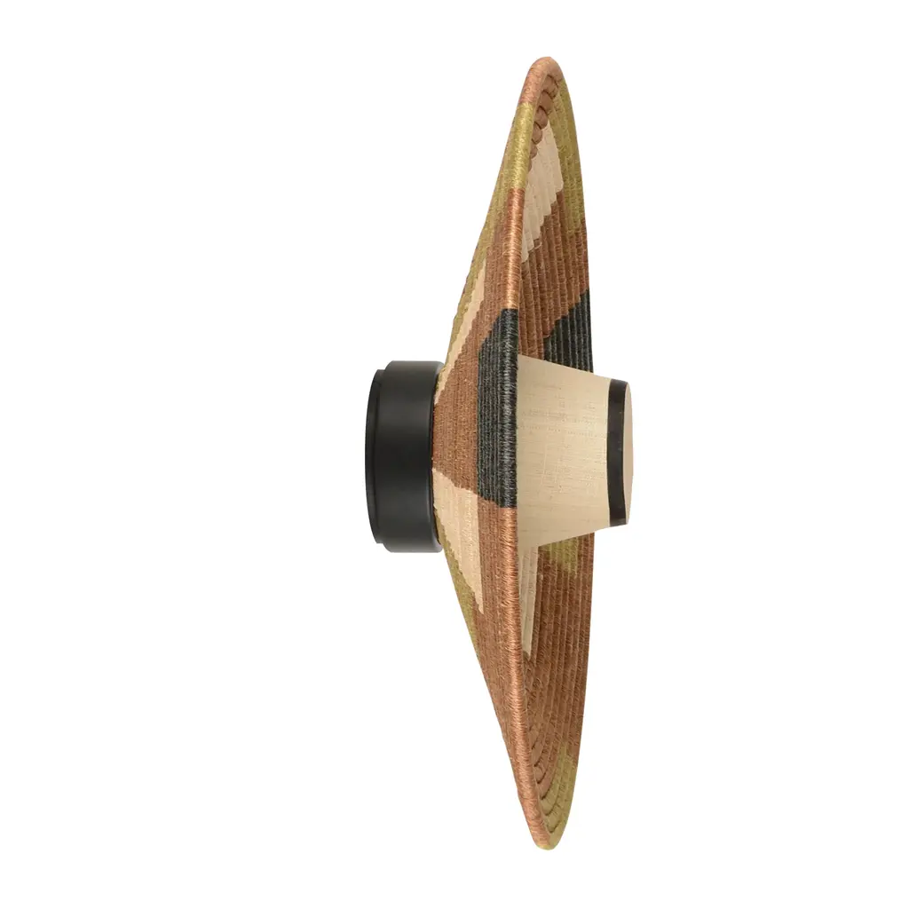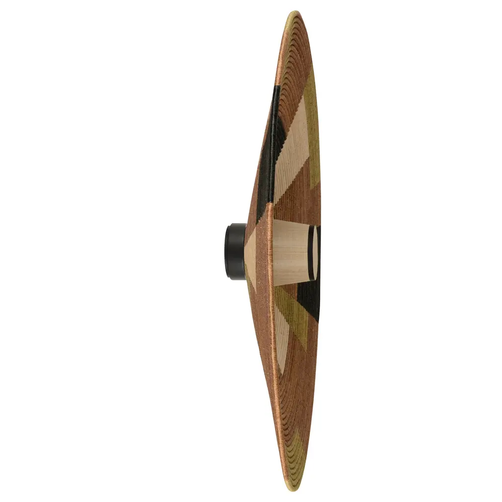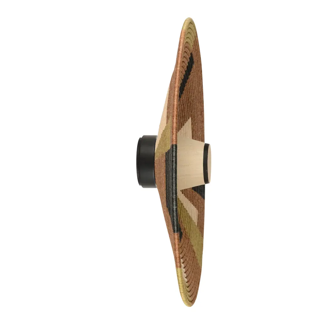 For her Parrot collection, Jette Scheib densifies her color palette, inspired by the parrot. Using artisanal weaving and folding methods, the colored abaca combines geometric braiding and a circular shape. With the Parrot Wall Sconce, Jette has taken up one of the oldest artisanal techniques, rooted in the earth, Jette Scheib pushes her creative process to the extreme, the purpose of which is not one more object, but the interaction between the object and the person, source of well-being. The gesture of the basket maker is close, for the designer, to a meditative gesture, and the basket is an affective object. Features