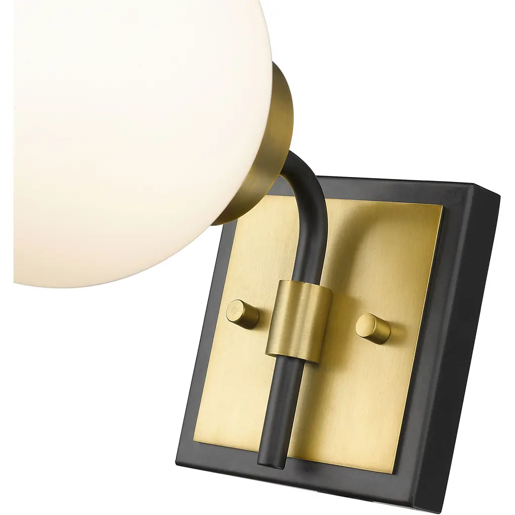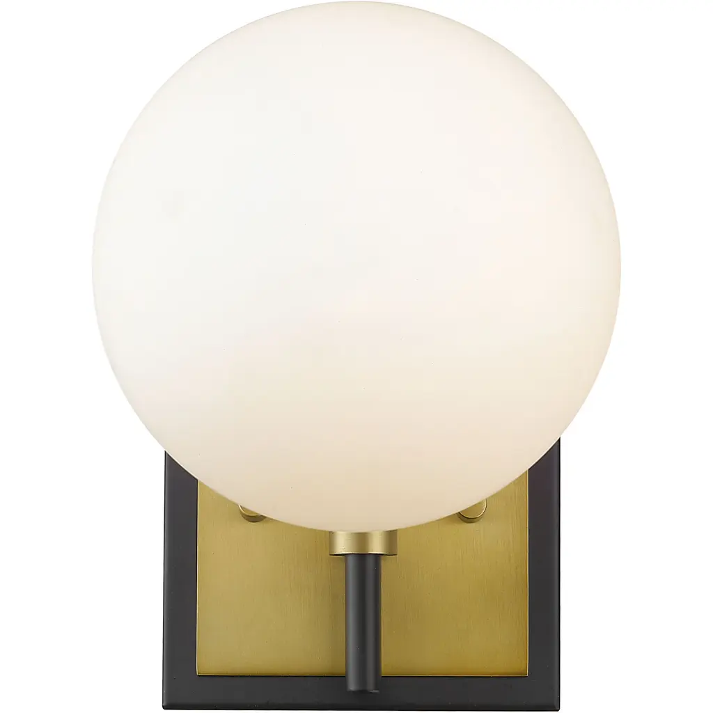 Add this one-light wall sconce to your home for a warm, rich ambiance. It features a matte black and olde brass finish with an opal glass shade that delivers a warm glow. Install it in a bathroom, powder room, bedroom, or even hallway for a splash of understated panache with a contemporary edge.