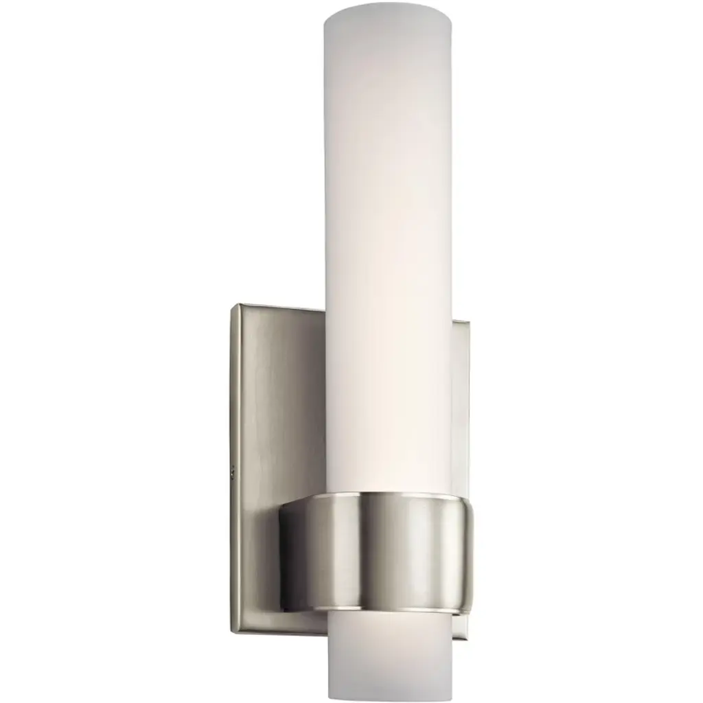 Clean metal lines and layered glass give the Parsons Studio Wall Sconce an elegant and simple look that complements a range of interiors. Its rectangular metal backplate supports a flat arm as it holds a cylindrical double-layered glass shade. An etched white glass inner shade houses the fixture’s incandescent lamping, while a clear glass exterior brings dimension to its design. When illuminated, its soft light brightens its surroundings for a soothing ambiance day or night.