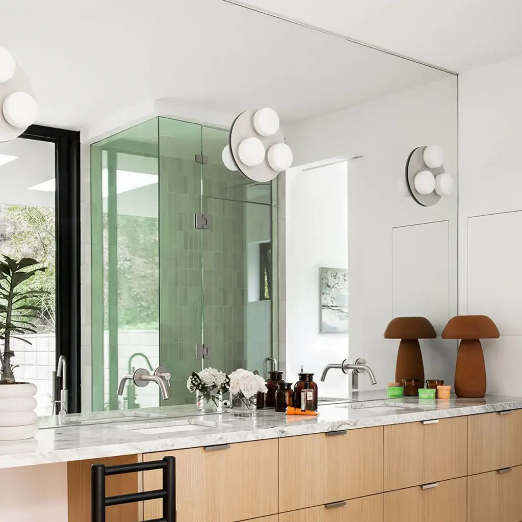 The Pastille Cluster LED Wall Sconce from RBW captures the essence of Art Deco glamour with its Old Hollywood-inspired aesthetic. This distinguished lighting fixture presents a curated selection of customization options—select either the elegant droplet profile or the sculptural faceted pattern for the glass globes, paired with your choice of refined finishes for the accent ring or backplate. A sophisticated constellation of light that transforms any space with its timeless allure and modern LED efficiency. Highlights