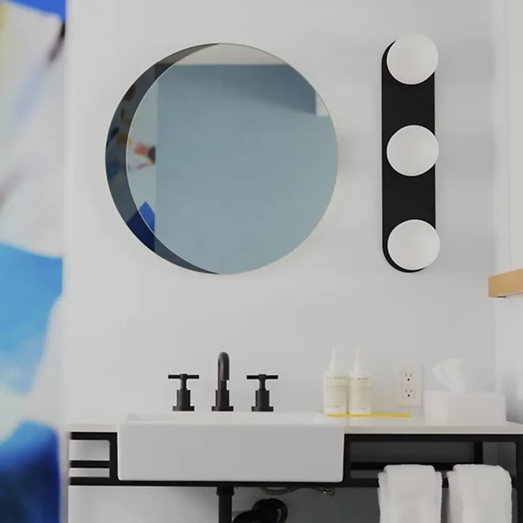 The Pastille Vanity Wall Sconce by RBW was originally inspired from the Art Deco times of olden Hollywood days, with timeless circular bulbs attached to lighting. Creating ambient lighting in indoor and outdoor spaces, the wall sconce features a metal backplate, which includes a variety of finishes, with 3 glass globes on it available in a variety of textures.