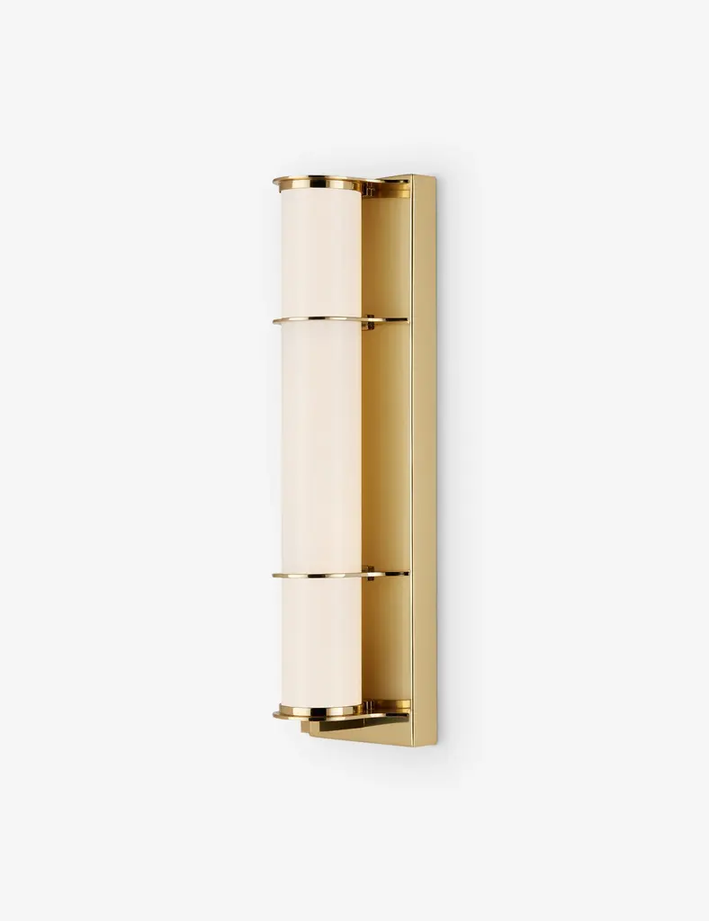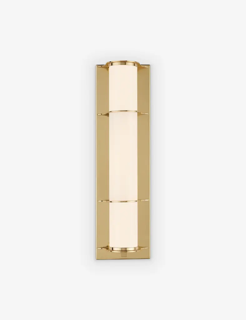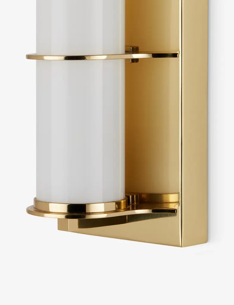 The Payson sconce is a chic nod to vintage bath lighting. A milky glass tube rests within a sleek metal frame, backed by a streamlined wallplate for contrast. We love this wall sconce for flanking mirrors in both modern and transitional bathrooms.