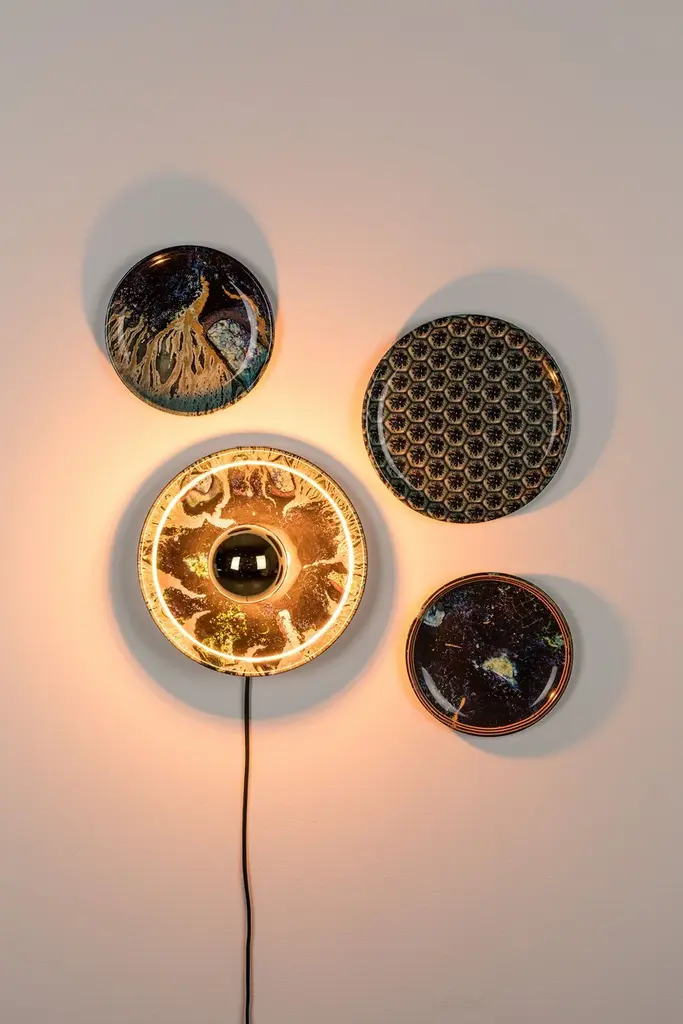 Adorn your interiors with the No Food Here Wall lamps Hexagon Print from Bold Monkey. Eclectic in style, this set of 4 wall lamps create a dashing appeal with an artistic essence. This item comes in a set of 4.