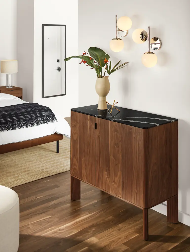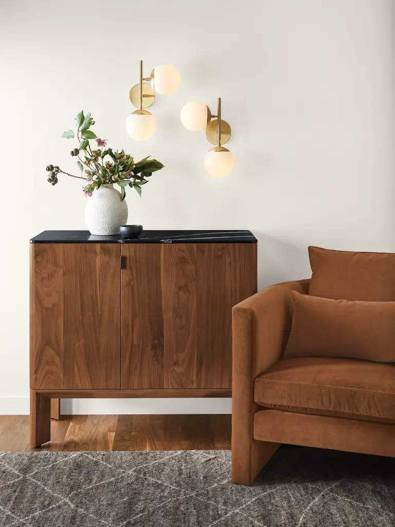 The Pearl wall sconce gracefully balances gentle curves and thin lines. Mount Pearl in any orientation you prefer, or use two sconces to flank a mirror or entryway for an eye-catching effect. The glass globes contain dimmable LED bulbs that provide a soft warm glow.