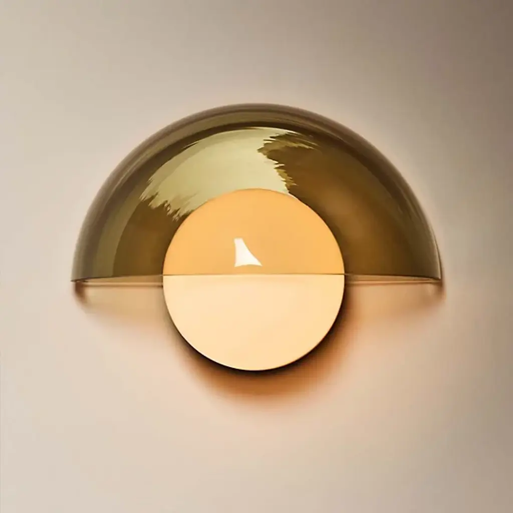Pearl LED Wall Sconce from Roll & Hill leverages 1980s elegance to shape inside walls with curving, layered forms. A rich brass and glass construction that echoes the stylized form of an oyster shell, the LED lamping takes on the form and place of a pearl inside a curving pocket of handblown Italian glass, giving the fixture an expressive form with an opulent feel. Anchored by a brass disc, the round inner glass diffuser cheekily peeps out from the partial shell shade above, almost winking as it illuminates with a mix of warm ambiance over a radiant wall wash.