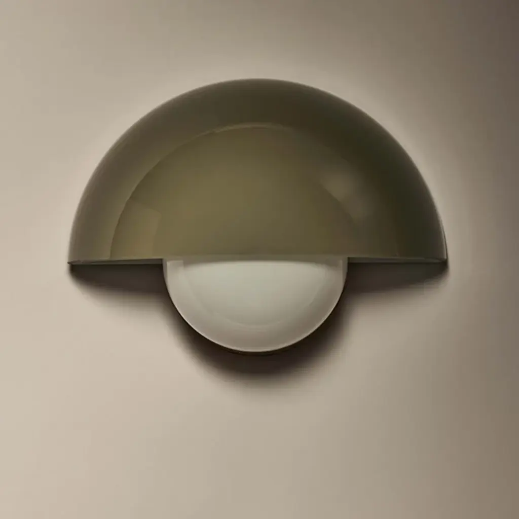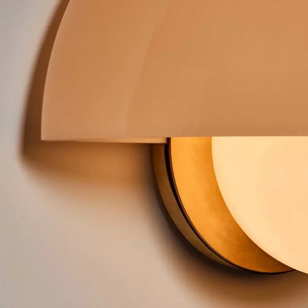 Pearl LED Wall Sconce from Roll & Hill leverages 1980s elegance to shape inside walls with curving, layered forms. A rich brass and glass construction that echoes the stylized form of an oyster shell, the LED lamping takes on the form and place of a pearl inside a curving pocket of handblown Italian glass, giving the fixture an expressive form with an opulent feel. Anchored by a brass disc, the round inner glass diffuser cheekily peeps out from the partial shell shade above, almost winking as it illuminates with a mix of warm ambiance over a radiant wall wash.