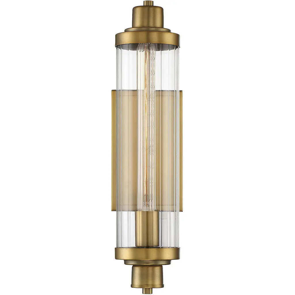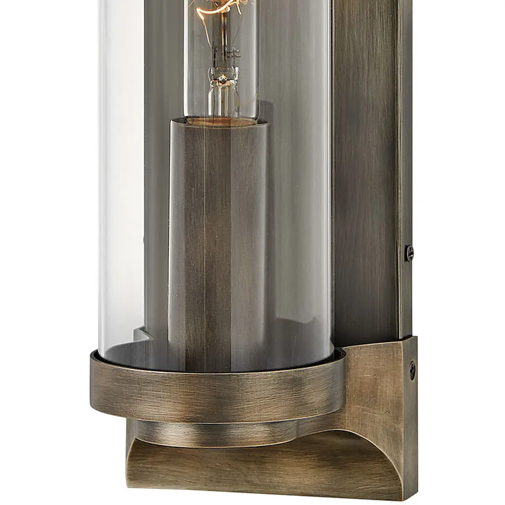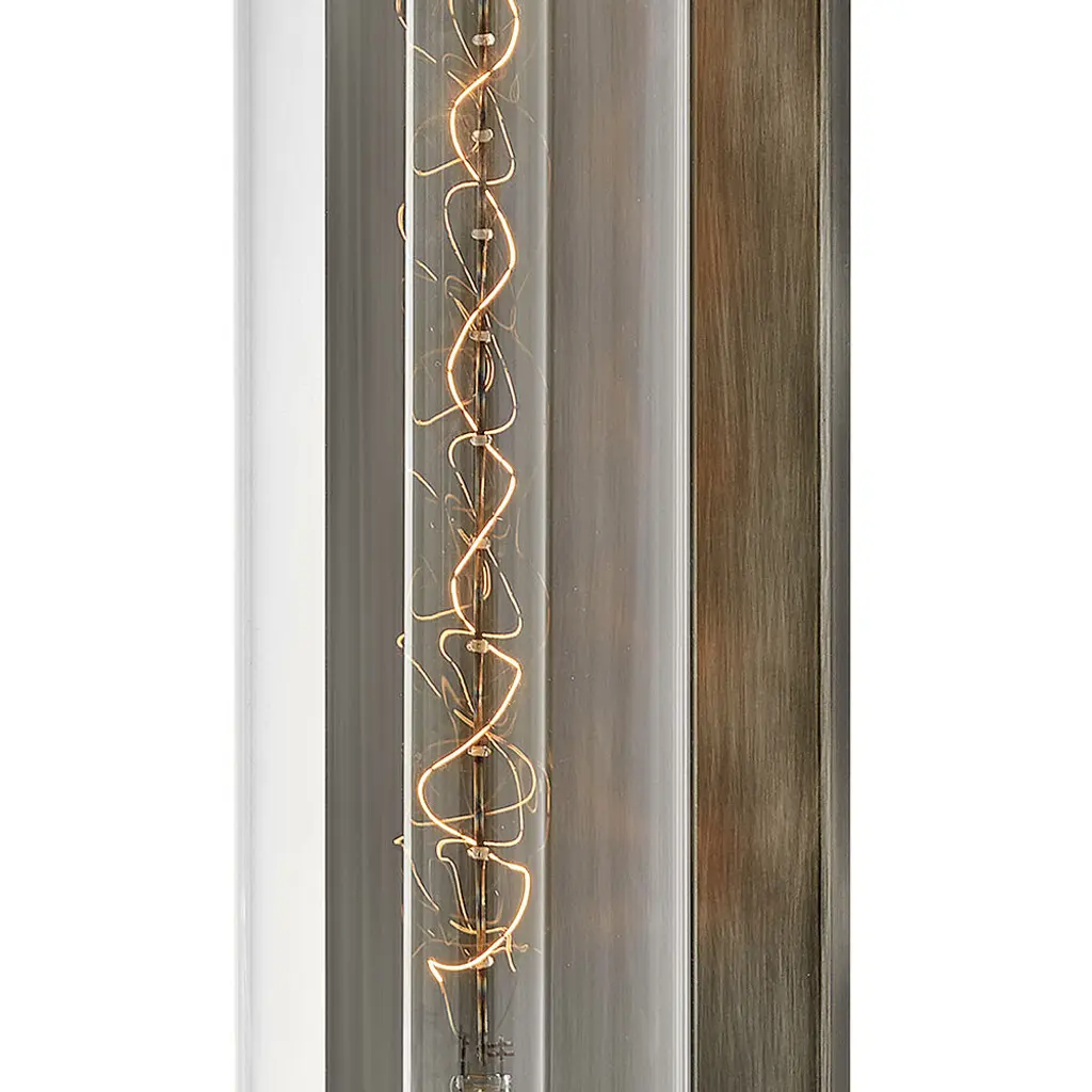 Take the indoor style of statement sconces outside. Drawing inspiration from the bygone era, Pearson emanates a feeling of nostalgia right outside your door. Featuring cast symmetrical end caps and clear cylindrical glass, Pearson combines the look of a vintage-style filament with the sleek back plate for the most sophisticated illumination in your outdoor living area. Available in a Burnished Bronze or Textured Black finish.