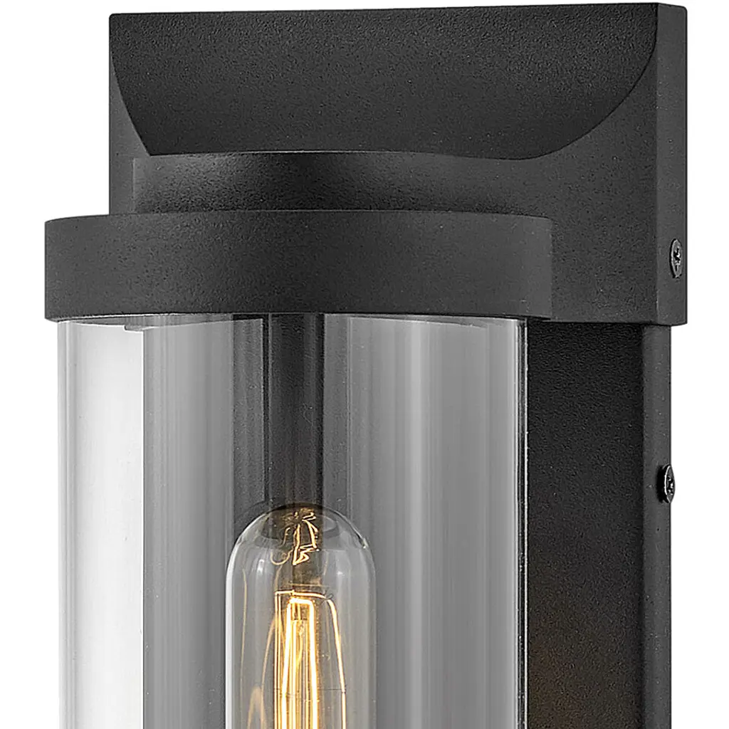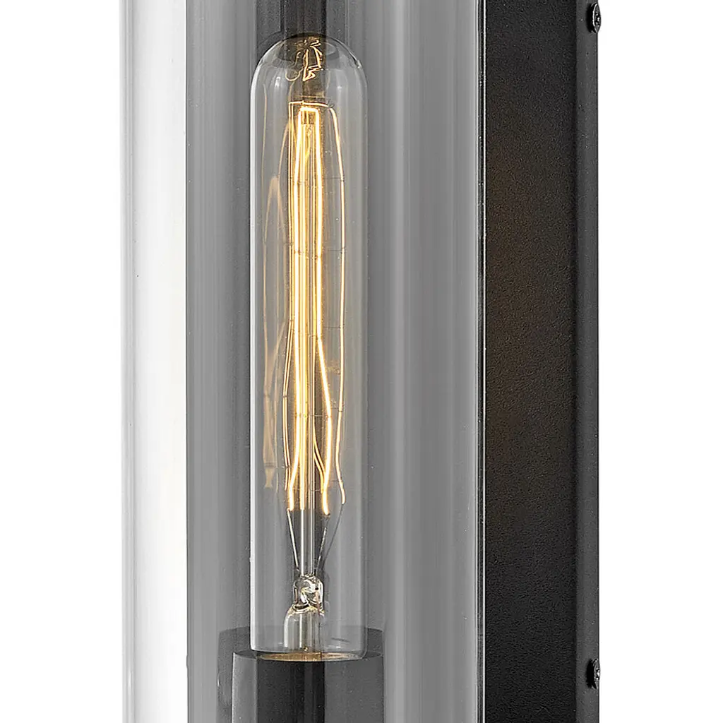 Take the indoor style of statement sconces outside. Drawing inspiration from the bygone era, Pearson emanates a feeling of nostalgia right outside your door. Featuring cast symmetrical end caps and clear cylindrical glass, Pearson combines the look of a vintage-style filament with the sleek back plate for the most sophisticated illumination in your outdoor living area. Available in a Burnished Bronze or Textured Black finish.