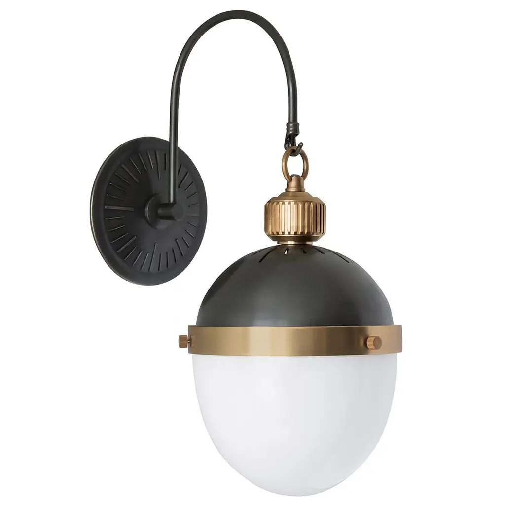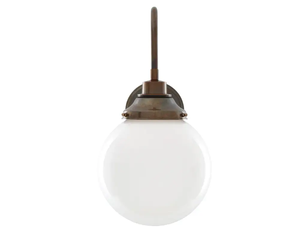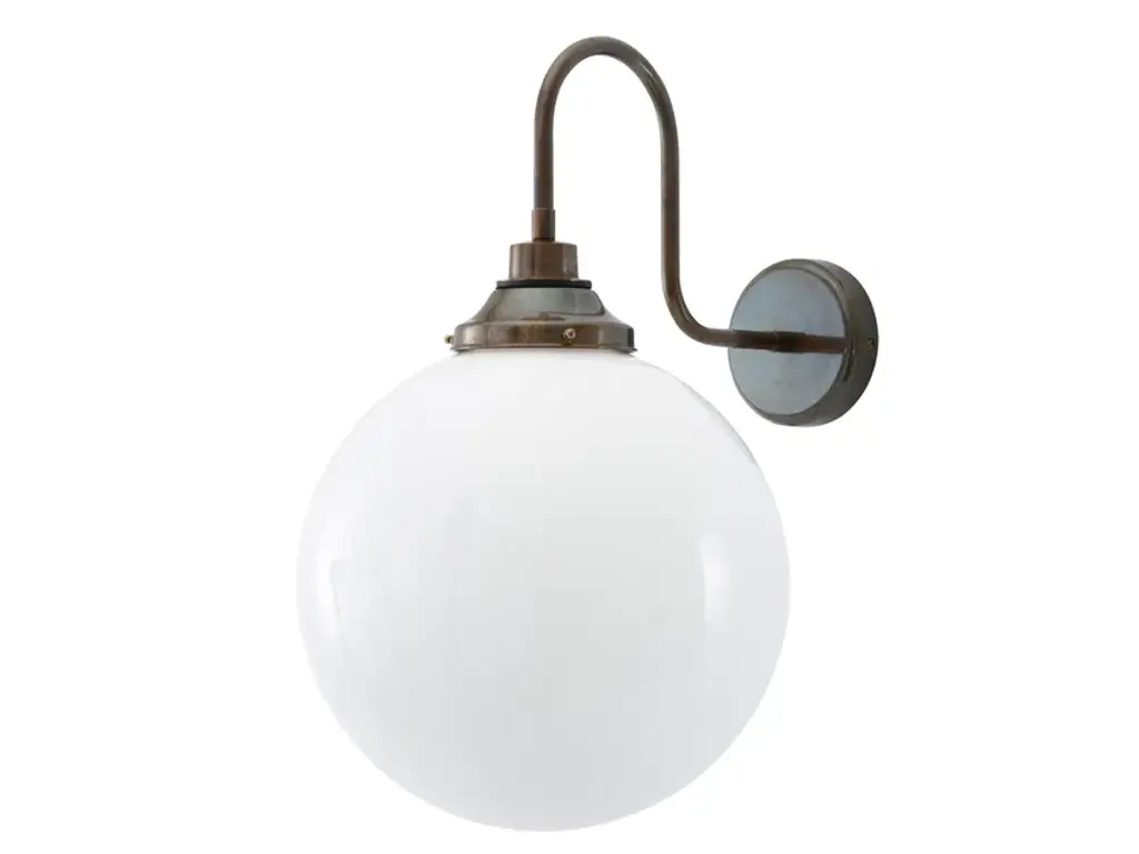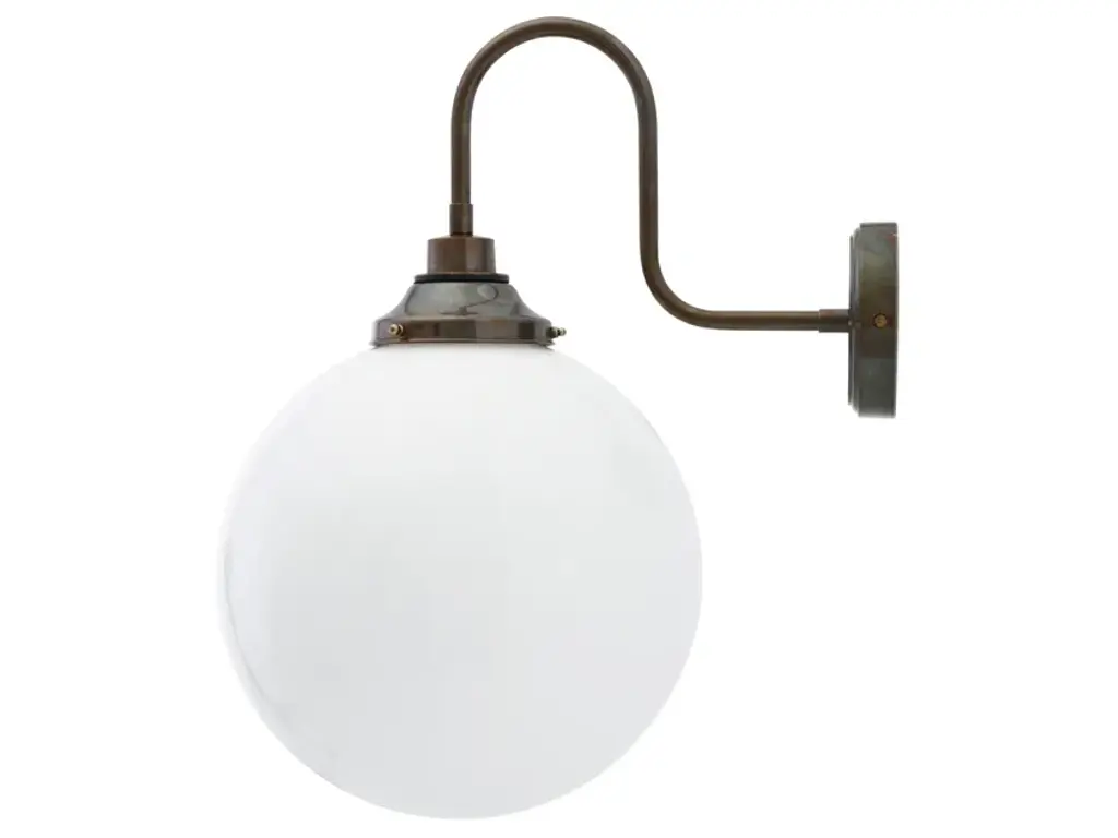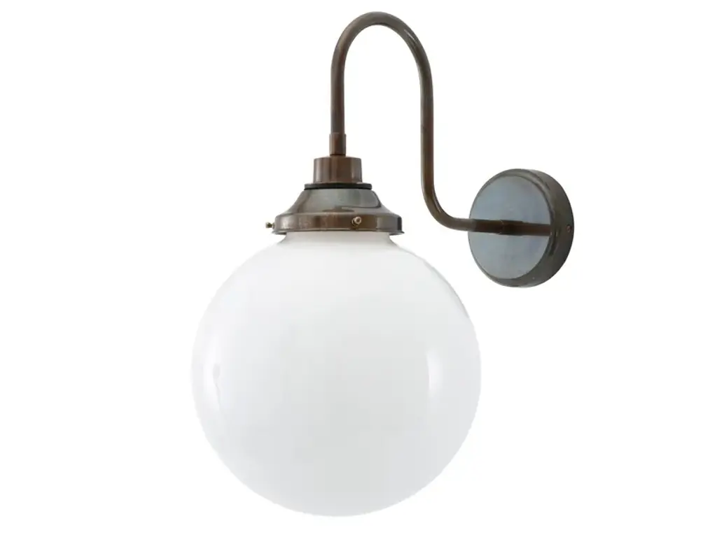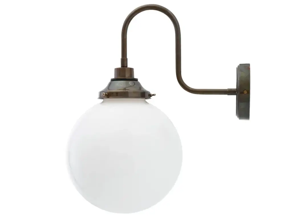 The PELAGIA SWAN NECK is a traditional bathroom wall light with a distinctive swan neck arm. This swan neck arm holds a brass gallery and 20cm opal glass globe shade on one end and is securely attached to the supplied wall bracket on the other. The PELAGIA SWAN NECK's frosted glass shade helps diffuse light evenly and softly around its installed environment. The PELAGIA SWAN NECK wall light is rated IP44. This means that it can be installed in almost any bathroom or outdoor location. This globe wall light is available in six colours; antique brass, antique silver, polished brass, satin brass, and powder-coated matte black or white. It's worth noting that antique silver, polished brass and satin brass finishes can be used indoors only.Max Wattage: 40WLampholder: E27 | Plastic | ES | Edison Screw | 2 Core CableVoltage: 220v/240VIP Rating: IP44Protection Class: Class IIGlass Code: GL044D