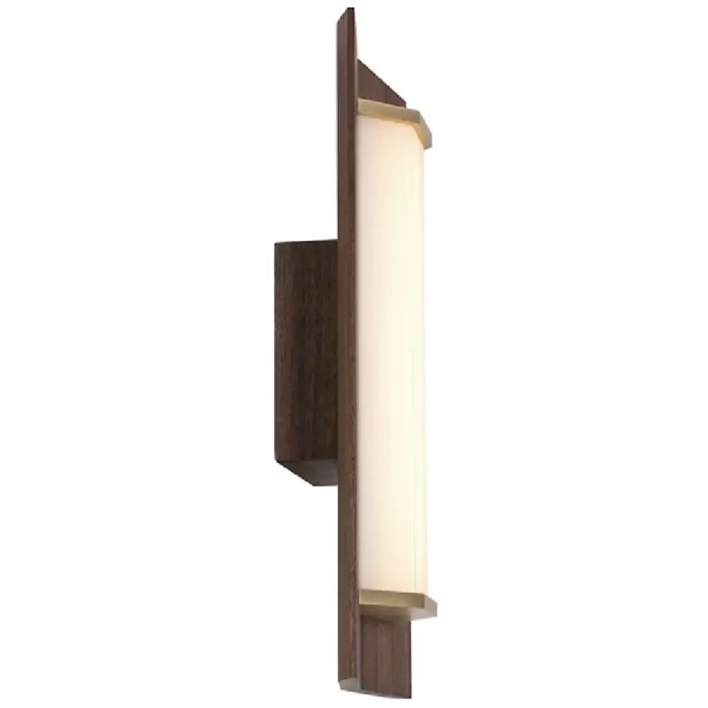 A striking modern look from designer Nick Sheridan that uses natural elements. The Penna LED Sconce by Cerno draws from a broad set of seemingly conflicted sources of inspiration — minimal and yet bold, contemporary yet welcoming and rustic — to create a standout look. This fixture is built around the relationship of materials, specifically Walnut and Brass. Designed with a long profile, this combination comes together to create an architectural quality that can be used to give dimension and depth to open walls. Inflected with a touch of mid-century flair, this fixture is the perfect accent for the Danish modern home.