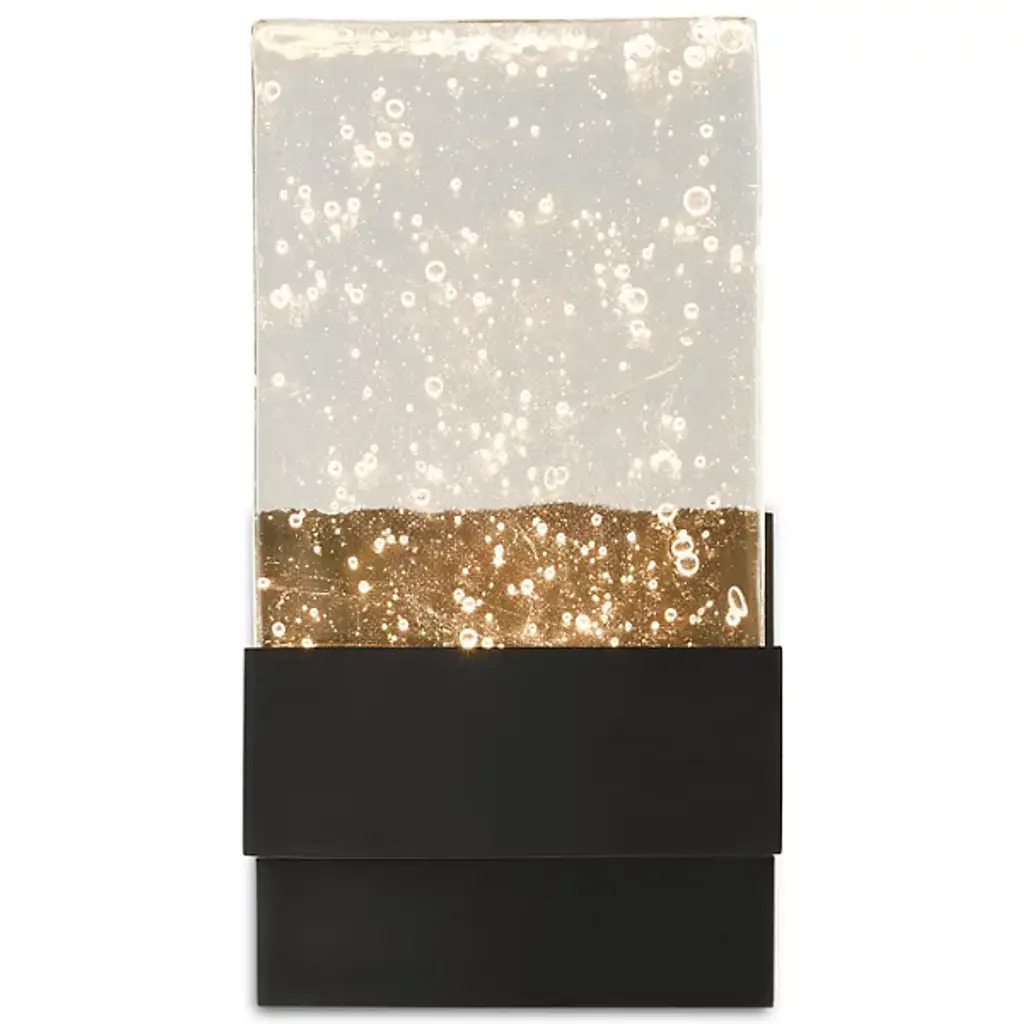 Naturally composed artistry rises to the occasion. The Penzance Wall Sconce by Currey & Company is a slab of textural beauty and illumination, showcasing a gorgeous rectangular chunk of seeded glass planted firmly in a layered metal base. An oil-rubbed bronze finish completes the elegant aesthetic, ensuring this LED sconce catches the attention of every visitor who passes through your foyer or entryway.