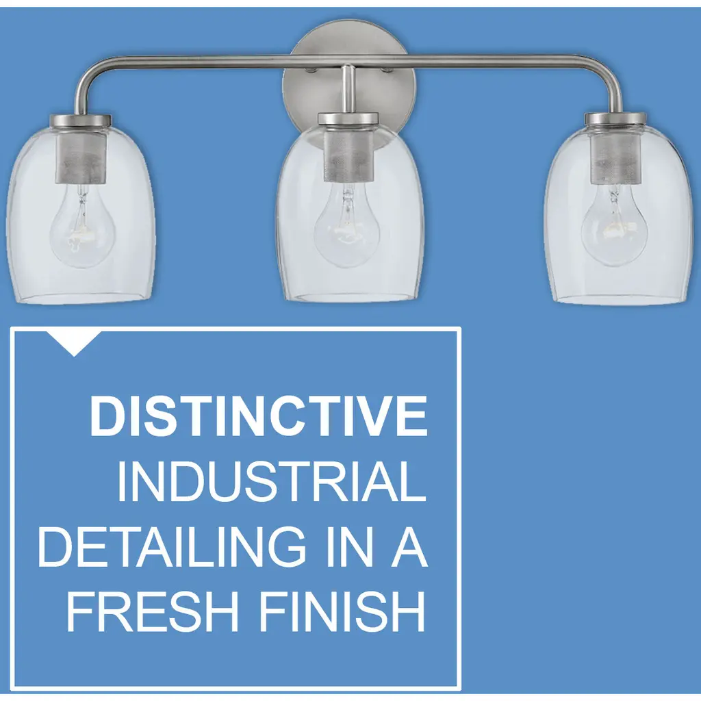 Percy’s transitional style rings loud and clear with clever bell-shaped clear glass designed to highlight its distinctive industrial detailing, all while serving up ample illumination. Easily installed up or down, Percy transforms any bathroom into one of the most stylish spots in the house. A collection of 3 versatile finish options, Antique Nickel, Black and Lacquered Brass, lets you pick the perfect Percy for powder rooms and primary baths alike.