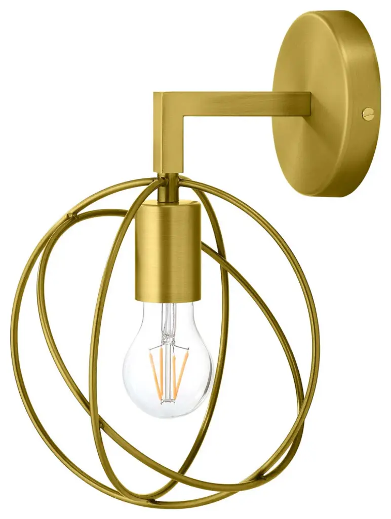 Light the path with the orbital design of Perimeter. Complete with a square bracket arm and open sconce, Perimeter is a statement piece that features stunning modern appeal with brass metal wires and contemporary modern look. Illuminate your surroundings and draw attention to the sophisticated beauty of this striking wall lamp. Perimeter takes one E26 60W bulb (not included).Set Includes:One - Perimeter Wall Sconce Light FixtureContemporary Modern DesignOrbital Brass Metal Wall LampOne E26 60W Bulb (not included)UL Listed and ApprovedInstallation RequiredProduct Material: plated honey brass ; no bulbOverall Product Dimensions: 8.5"L x 8.5"W x 13"HProduct Weight: 2 LBs