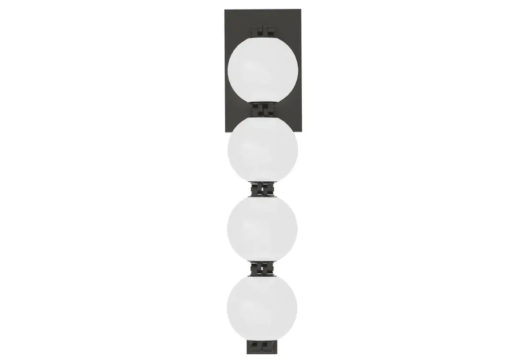 The Perle LED Wall Sconce from Visual Comfort Modern presents itself in soft white glass, imparting a distinct design presence to any space. Designed by Seam Lavin, Perle facilitates ultimate customization, allowing for straight-down pendant installation or striking chandelier arrangements draped from two mounting points. Utilize either the surface canopy or a sleek remote driver canopy for a minimalist aesthetic. The natural brass connectors, thoughtfully engineered, not only support the glass but also enhance the piece's aesthetic appeal.