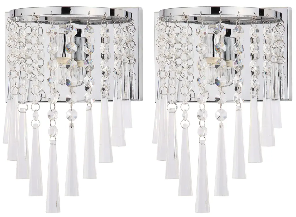 This glamorous Perri Wall Sconce (set of two) is jewelry for the high fashion interior. Art Deco style beads and crystal accents are paired with a shimmering metallic chrome finish, making Perri ideal for the modern soiree host.