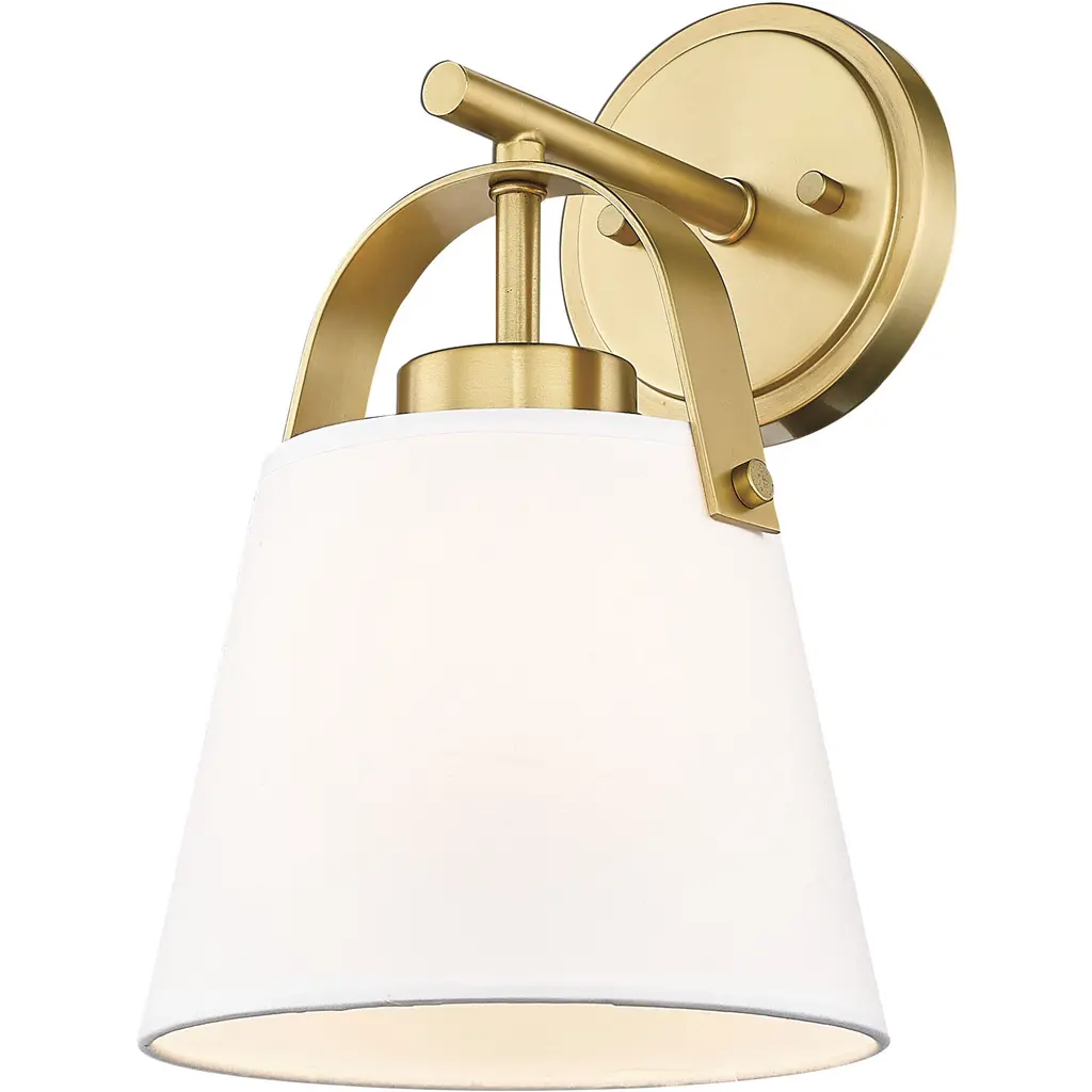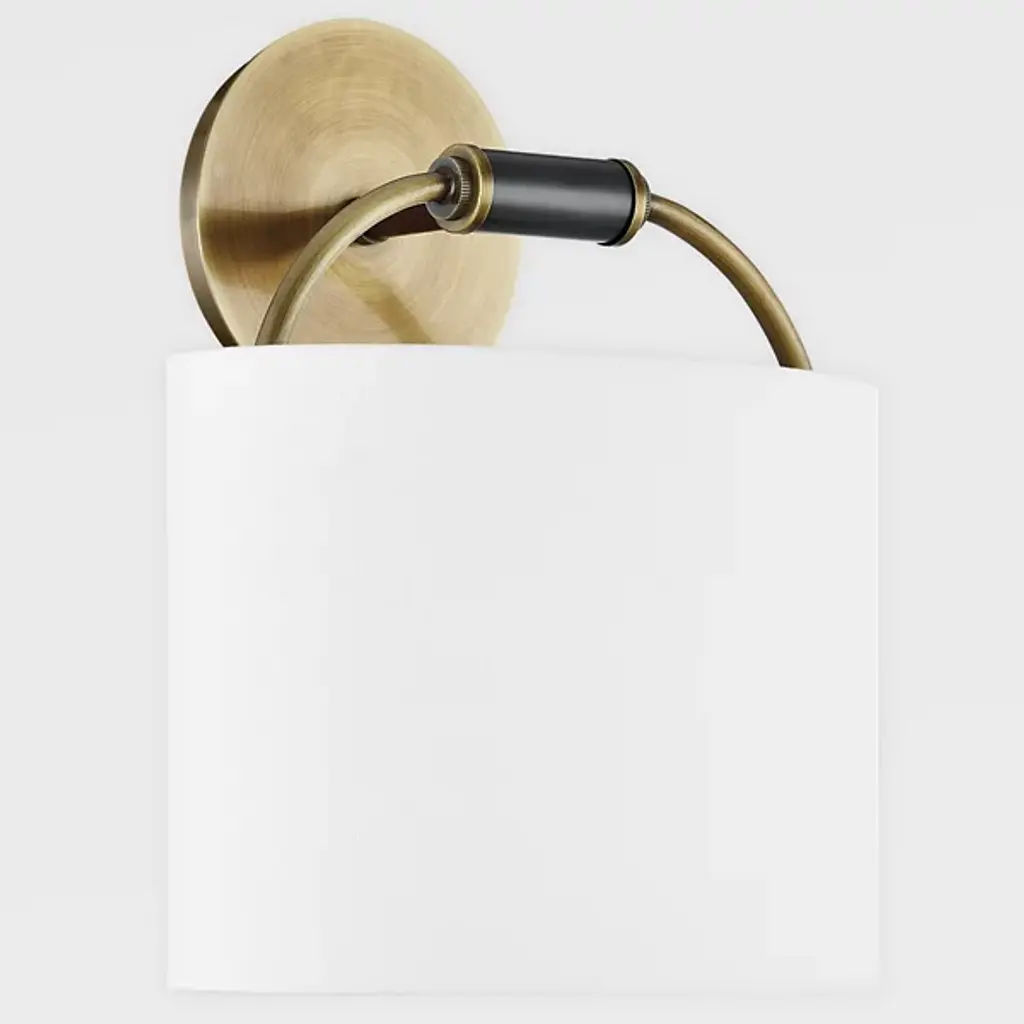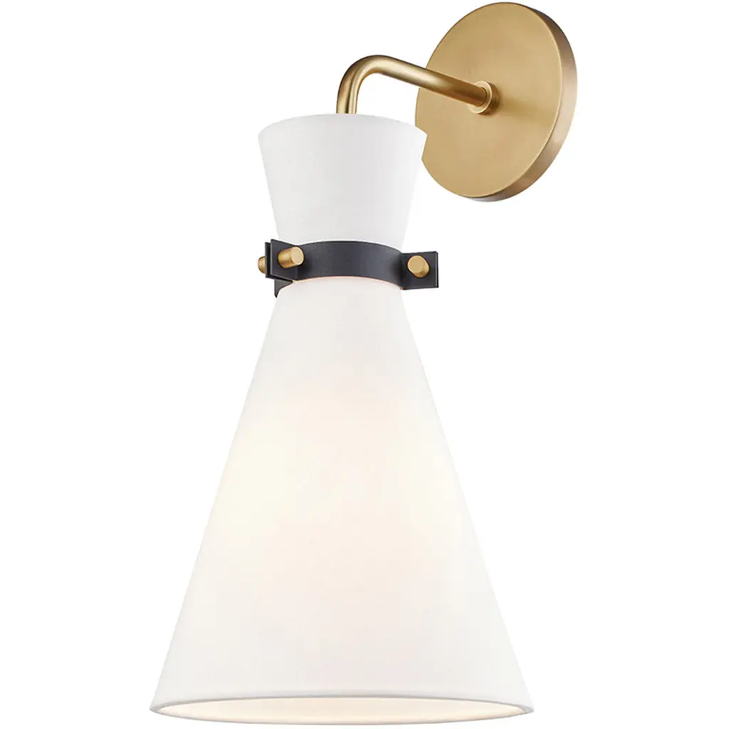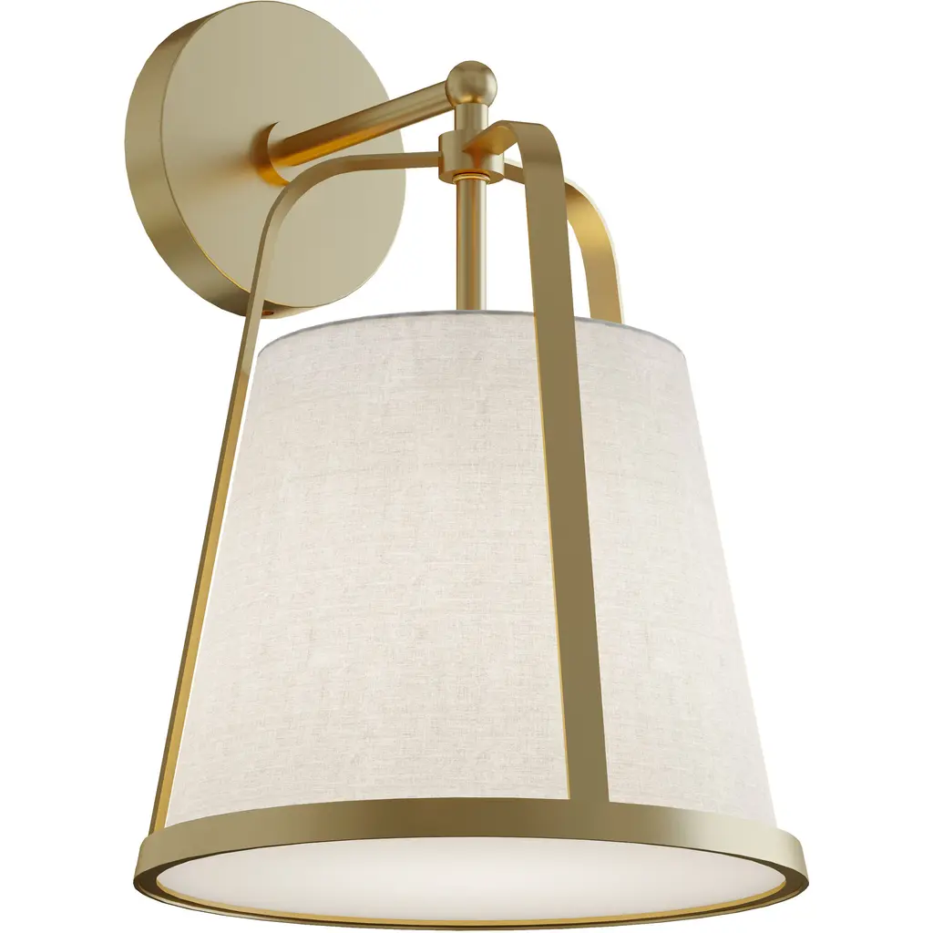 The Pete Wall Sconce is a mid-mod inspired luxury light presented by Troy Lighting. Transitionally styled, it features a large and airy linen shade for light diffusion, which pairs nicely with the luxe metallic finish along the mounting plate and arms. A dark contrast at the central collector adds visual interest. Pete displays nicely as a solo unit or can be placed in multiples based on locale and preference.