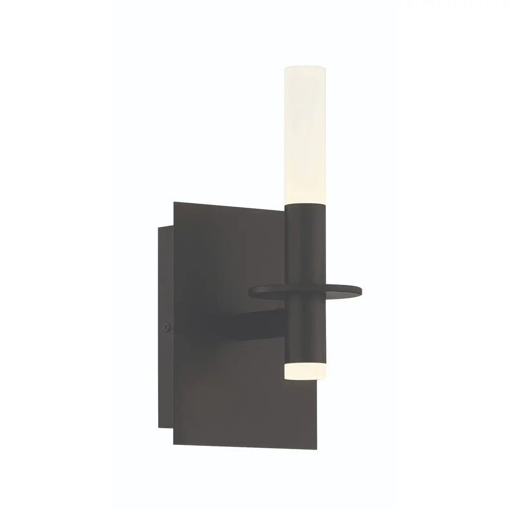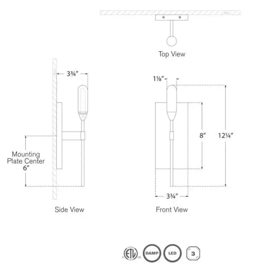 Overture Medium Sconce in Bronze with Clear Glass Designer: Peter Bristol Height: 12.25" Extension: 3.75" Backplate: 3.75" x 8" Rectangle Mounting: Hardwire Socket: Dedicated LED Wattage: 6w (500lm) Safety Rating Location: DAMP Note: UL Only Requires Smaller Outlet Box
