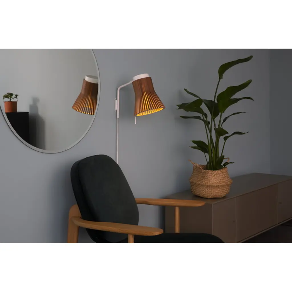 Secto Design’s Petite 4630 wall lamp catches the eye with its slender stem and wooden shade that filters the light creating a soft ambience to any space. Secto Design luminaires are handmade in Finland from form-pressed Finnish birch. The lamps have clean Scandinavian silhouettes, and the wooden surface gives them a warm and appealing character. Secto lamps are designed by architect Seppo Koho who wanted to develop a softly filtering light that doesn’t dazzle but invites people to come closer. Secto lamps emphasize space and environment by creating a unique atmosphere and feeling of closeness.