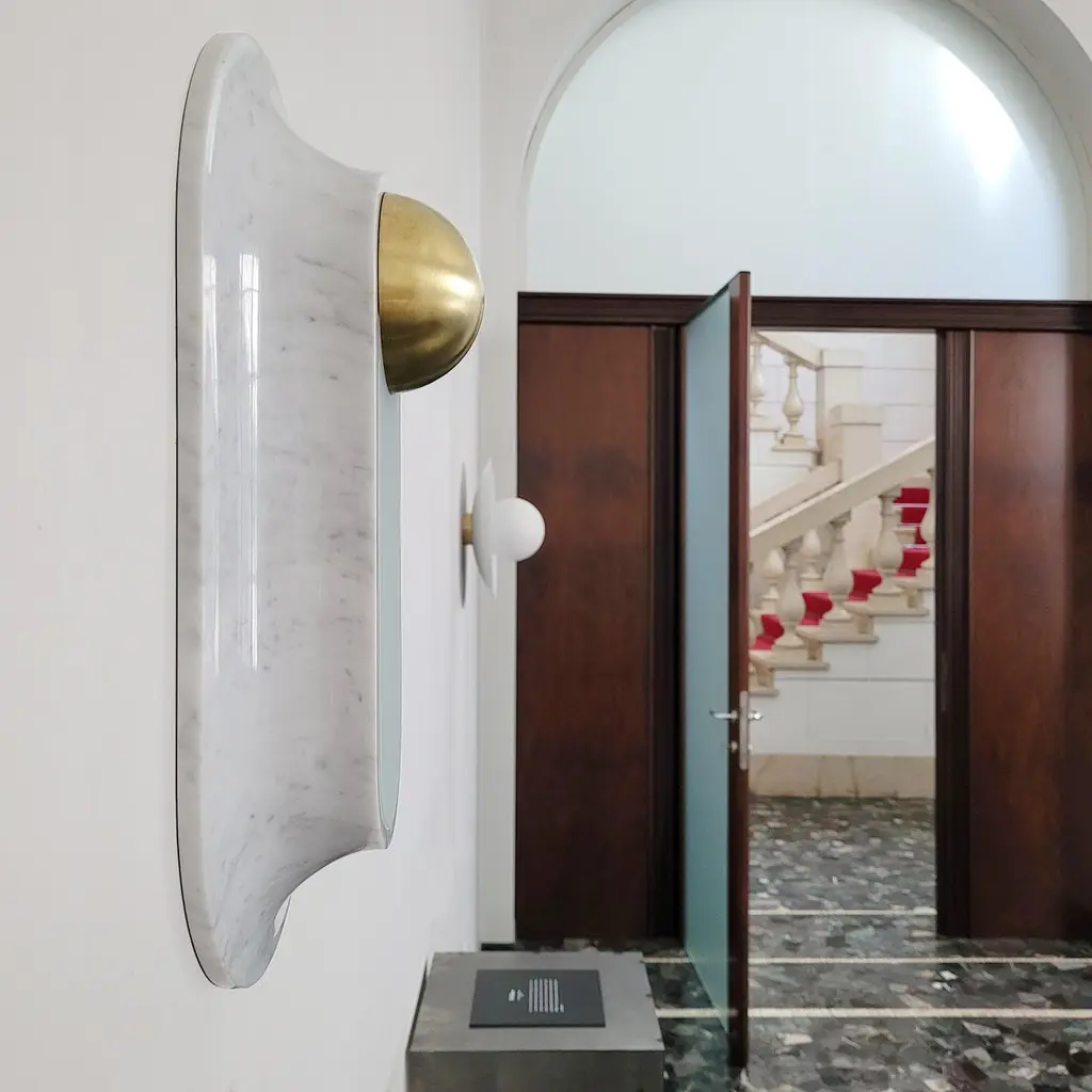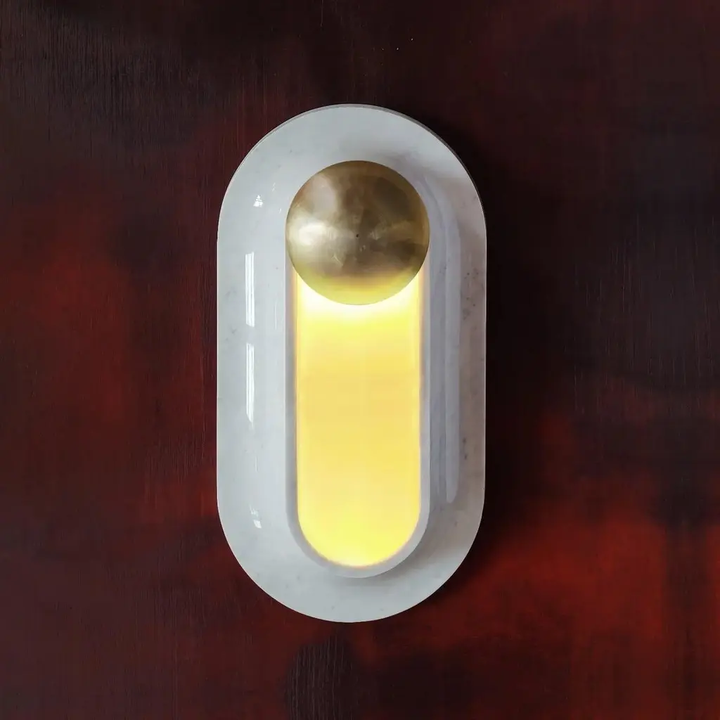 Pfaffikon Sculptural Marble And Brass Wall Lamp By Jan Garncarek