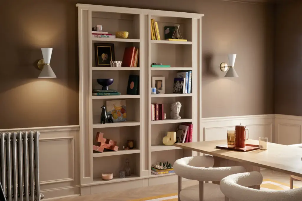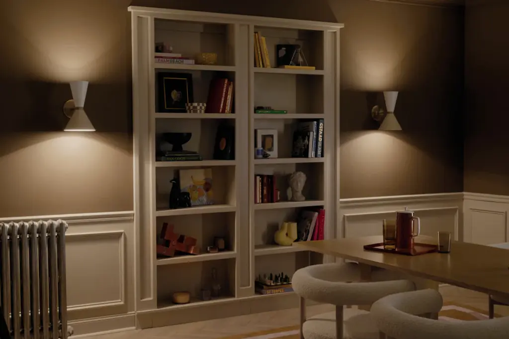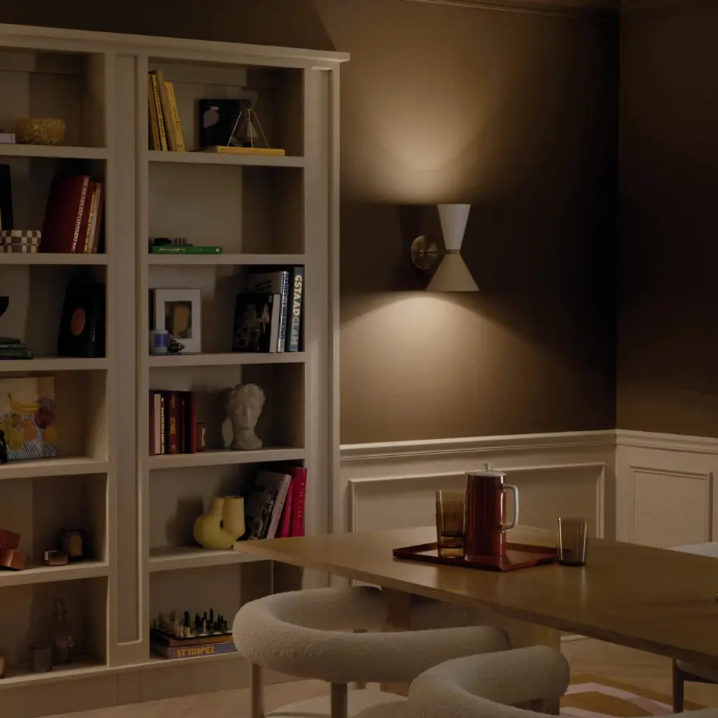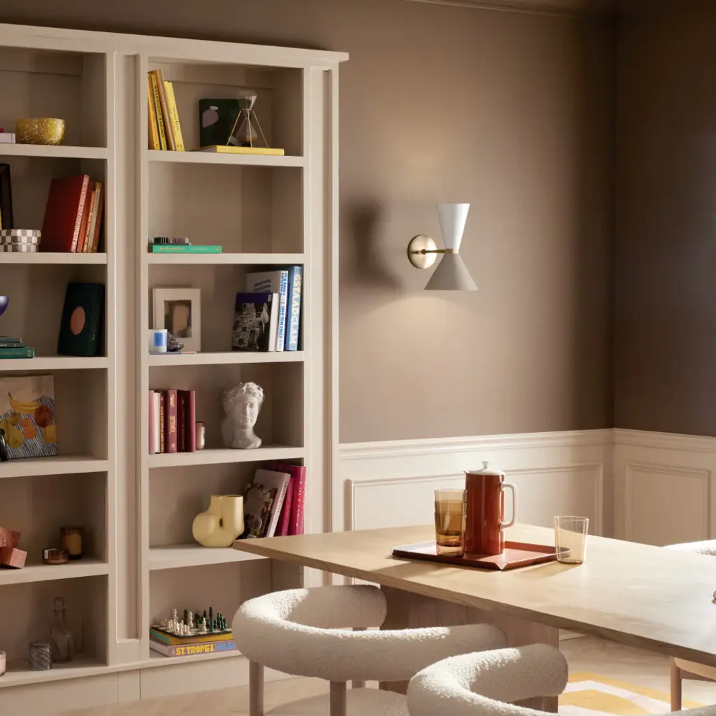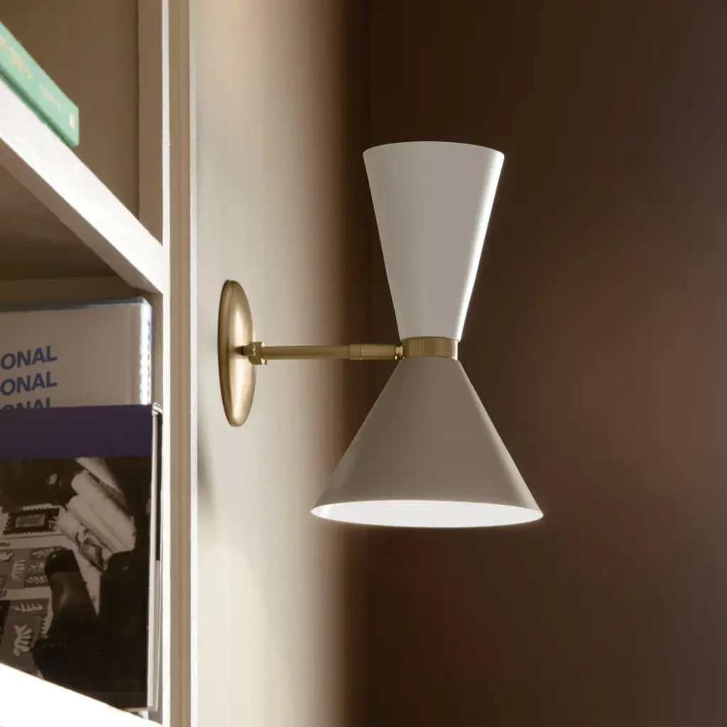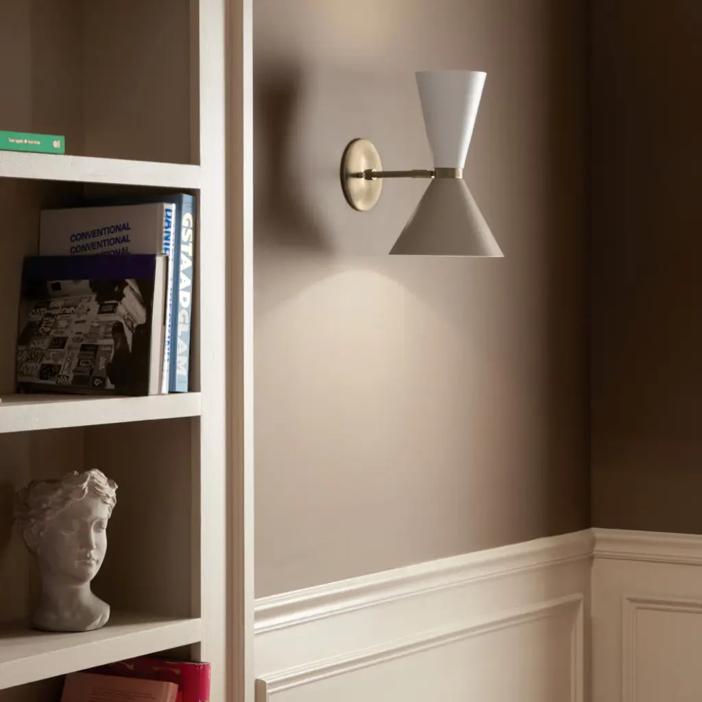 The Phix 2 light wall sconce lets you choose your look with the included greige and white shades that pivot as you wish. Light illuminates both up and down for a beautiful effect. With an elegant champagne bronze finish, Phix exudes a modern aesthetic that''s edgy, yet livable.