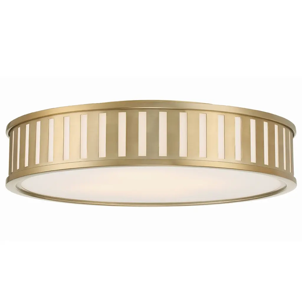 Whether in capsule-shaped sconces or pod-hatch-shaped flush mounts, Phoebe’s futuristic vibe is totally present with a pattern of square and rectangle perforations along its metal frame, which allow extra light ventilation from its sides.