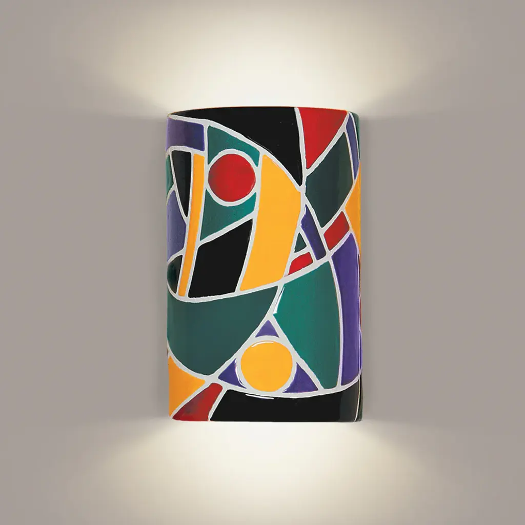 Assertive and artistic, the Picasso Wall Sconces offers dramatic curves and colors. This one-of-a-kind wall light is made from kiln-fired glazed ceramic. Open on both ends, light washes the wall adding to the ambiance of any setting indoors or out. Standard Lamping: Uses (1) 100W E26 Medium Base A19 Bulb. (Bulb not included)Number of Bulbs: 1Watts per Bulb: 100Standard Base Type: E26Mounting Center: 4.75in.Country of Origin: U.S.A.Warranty: One year limited warrantyResistant to rust and corrosion. Suitable for indoor or outdoor damp locations.ADA Compliant.