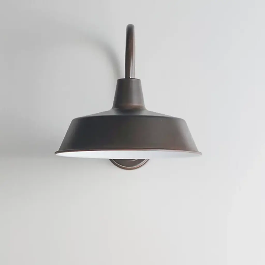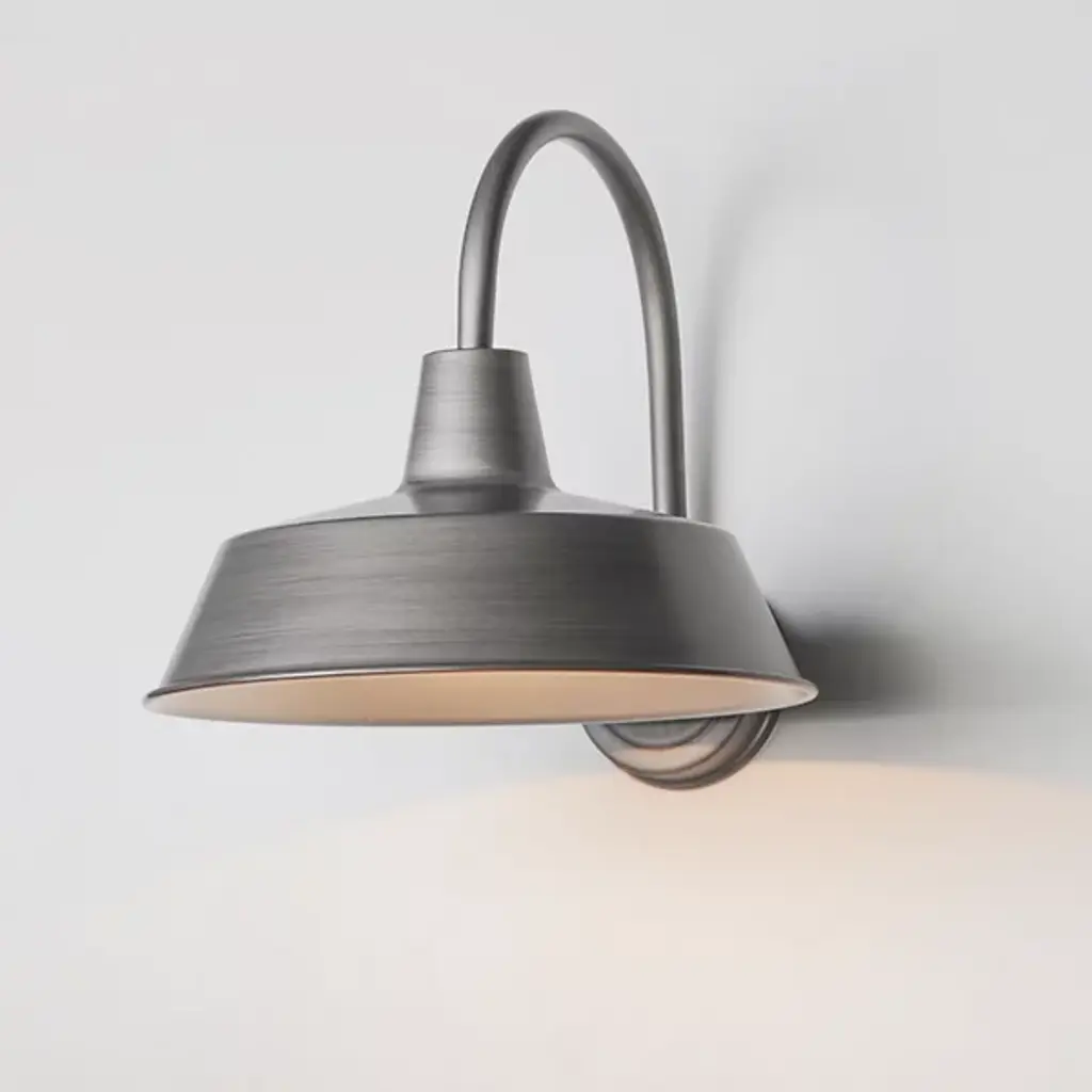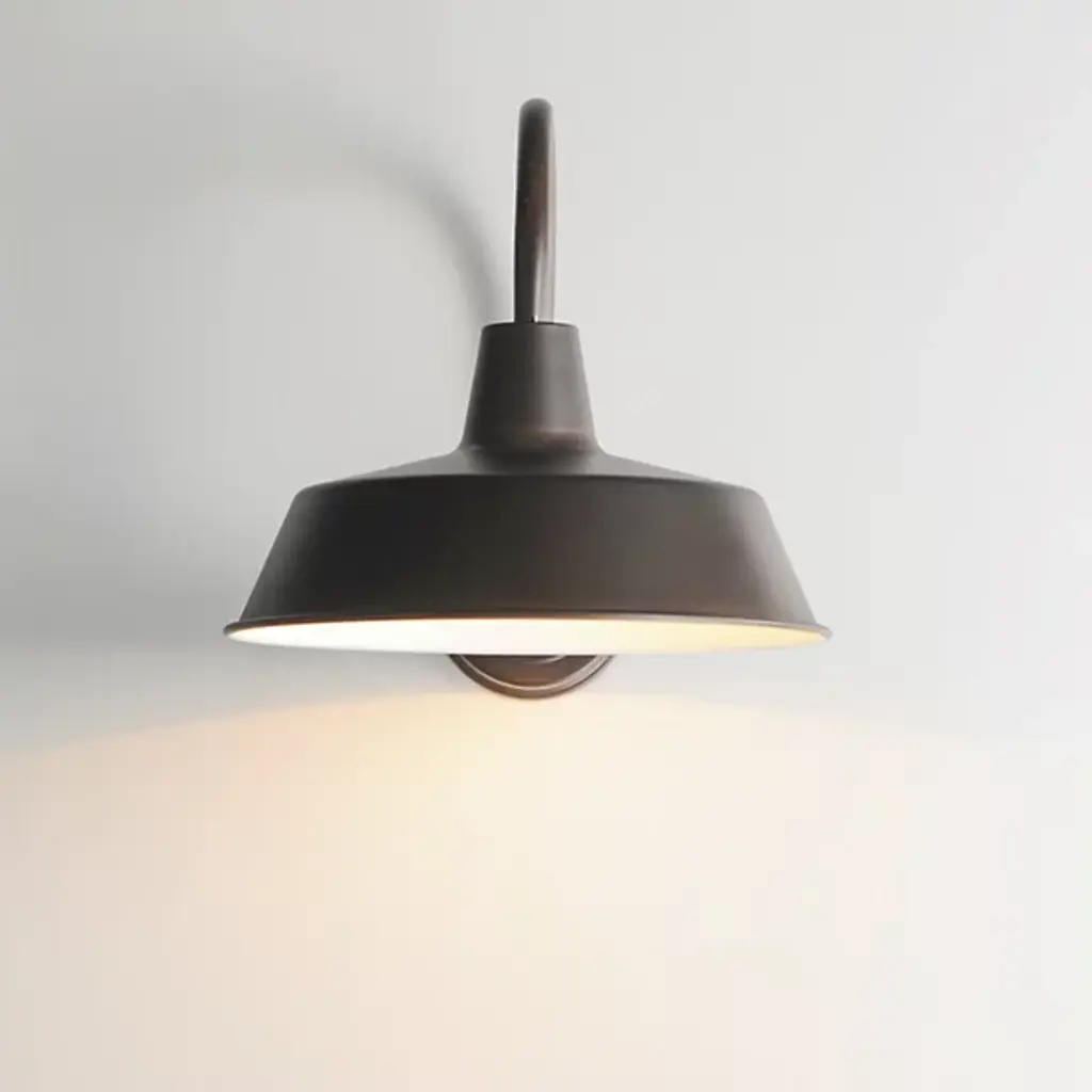 A simple and traditional piece, the Pier M Outdoor Wall Sconce from Maxim Lighting brings an even and bright layer of light to the outside of your home with a silhouette that works well with a range of home styles. Made of smooth metal throughout, this piece mounts directly to the wall with a rounded backplate. It extends a long, gracefully curving body that angles downward toward a wide shade that houses a single bulb.