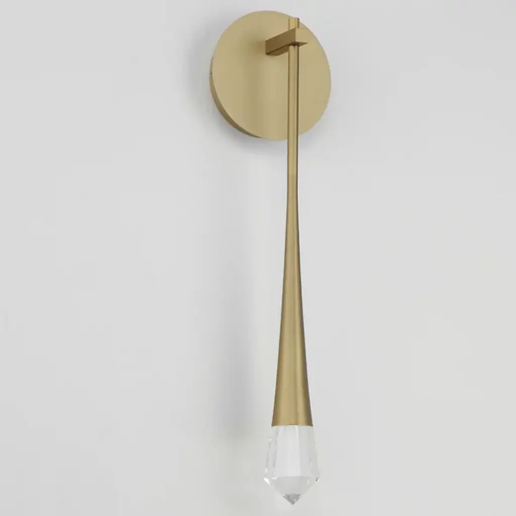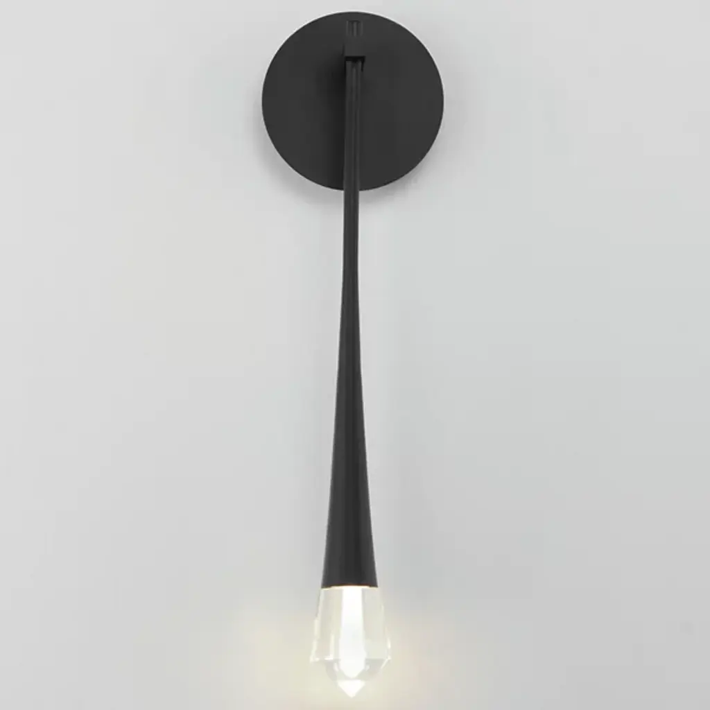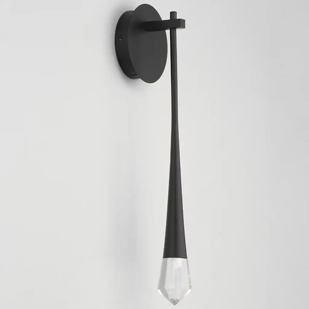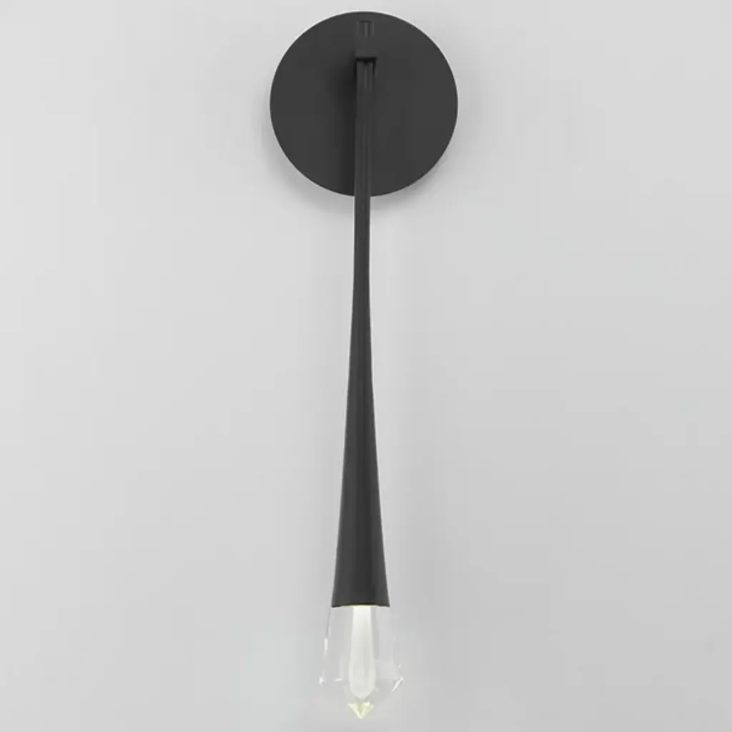 An elongated profile with a piercing statement. The Pierce LED Wall Sconce from ET2 Lighting features thin black wires that support a tapered metal pendant. Recessed in this form is a high-powered LED that illuminates a brilliantly faceted crystal element with etched details inside its form to capture light and enhance its beauty. The design complements both modern and many transitional interiors. A coordinating ADA-compliant wall sconce was designed with a rigid stem for public spaces and has been sealed for use in damp locations.