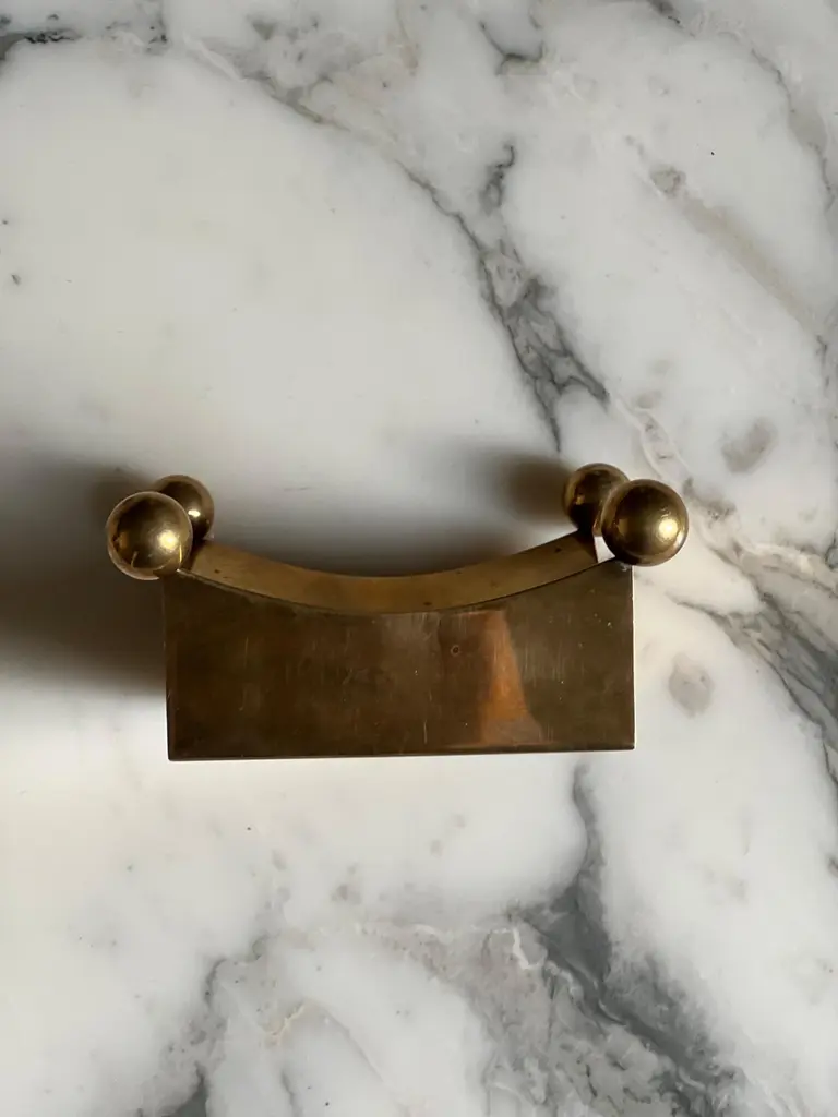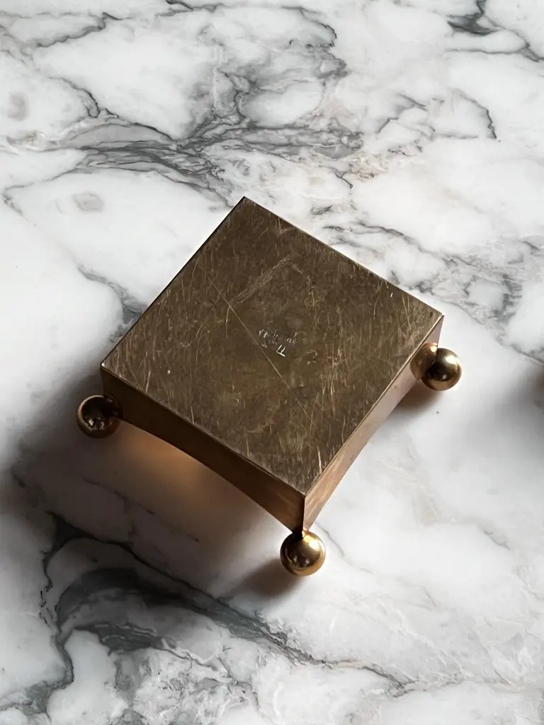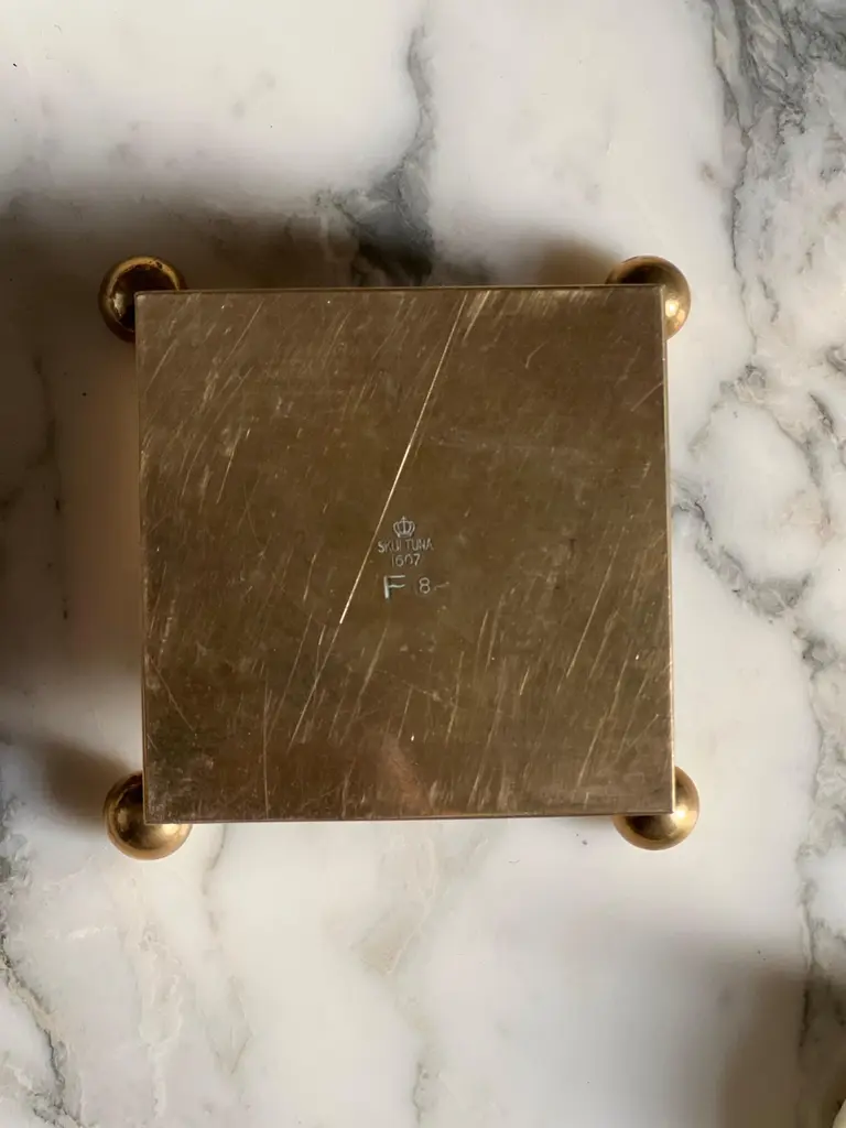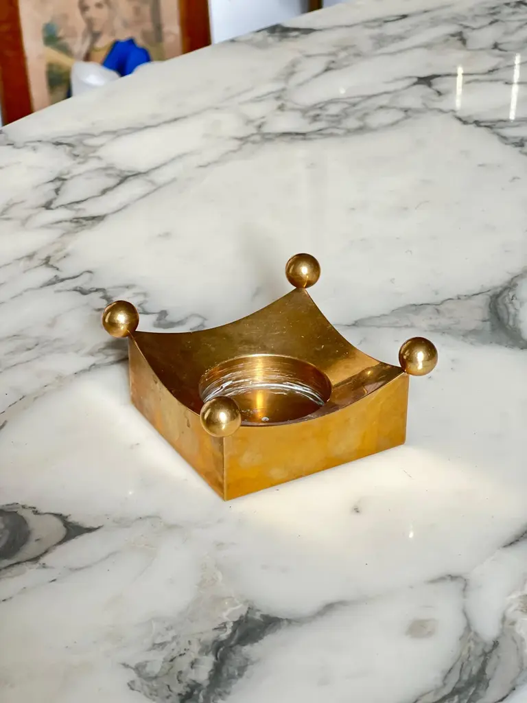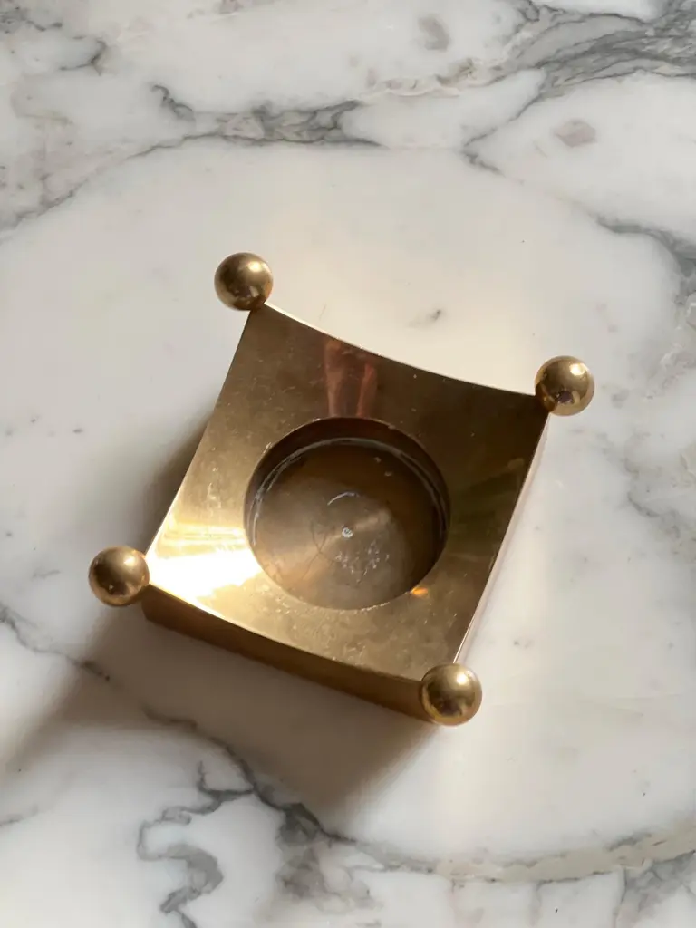 This series of candleholders was hand crafted in the 1970's at the Skultuna factory next to the studio were Pierre Forssell was working with he's assistant. The candleholder is made of brass. Simple, minimal and elegant at the same time. The incurved top provides some warm reflection. Pierre was inspired by Brancusi when visiting the museum in Stockholm. The size is great to be used on a table, on a buffet or on a desk. But more than a candleholder it's a sculpture. We do have more exemple in our collection. Feel free to reach out for others models. _____________________________________________________________Pierre Oskar Paul Forssell, born 1925 in Stockholm, died 2004, was a Swedish designer, craftsman and silversmith.Forssell worked for Gense 1952–1964 where he designed the Piruett swivel fork (introduced 1955 on the H55, launched 1959) and the Spectra cutlery range (1961). He also carried out work for Skultuna Messingsbruk between the years 1955 and 1986, for example the wall sconces Pendel and Reflex. He also designed sacred art in brass, such as crosses and candlesticks, for several church rooms.