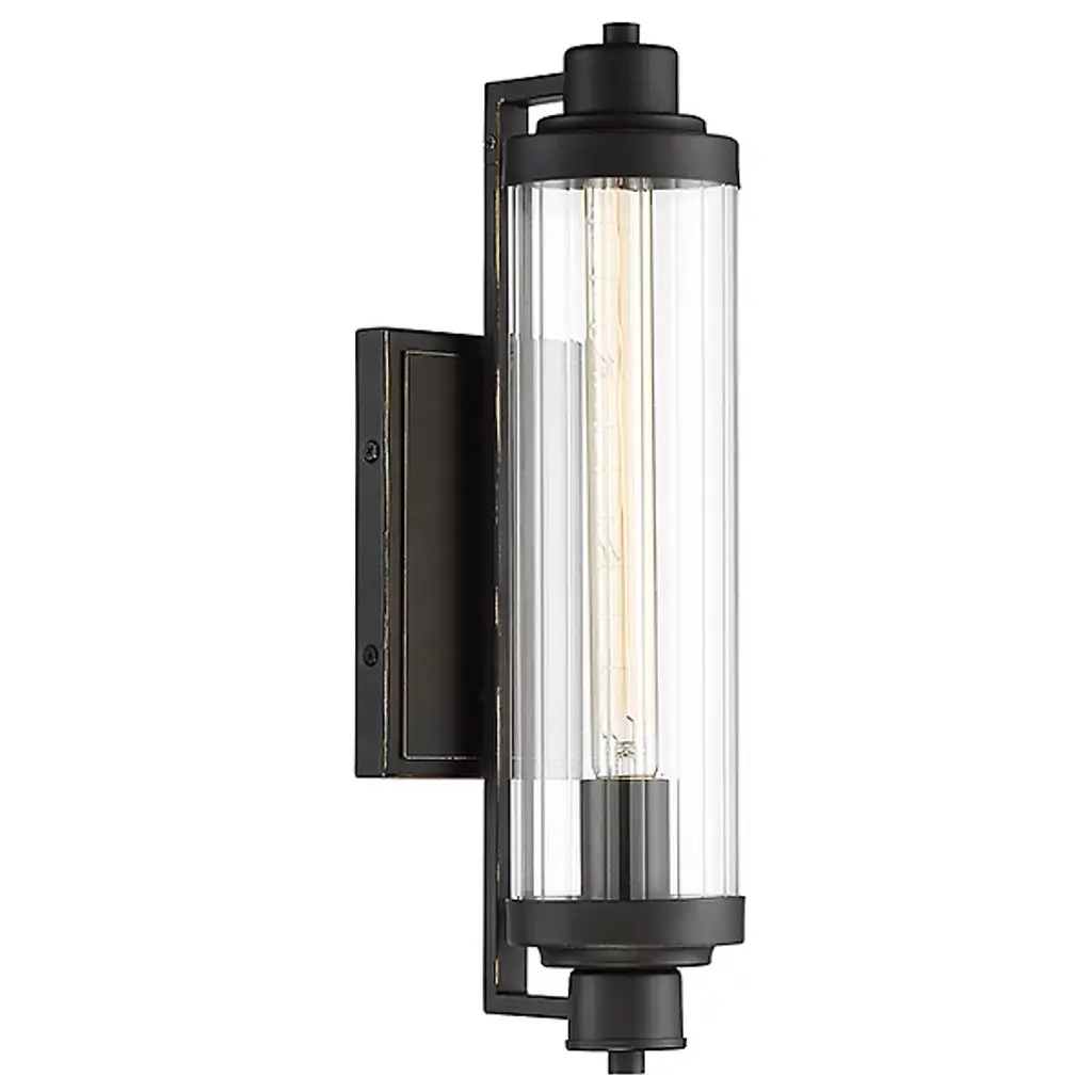 Bring a vintage twist to your interior décor scheme with the Pike Wall Sconce by Savoy House. The rectangular backplate is solidly-built and takes little effort to install, while the slim, tall clear ribbed glass shade sits in place firmly with minimal hardware needed. This sconce also comes in your choice of finishes, making it a trendy answer to elevating your home’s ambience and style.