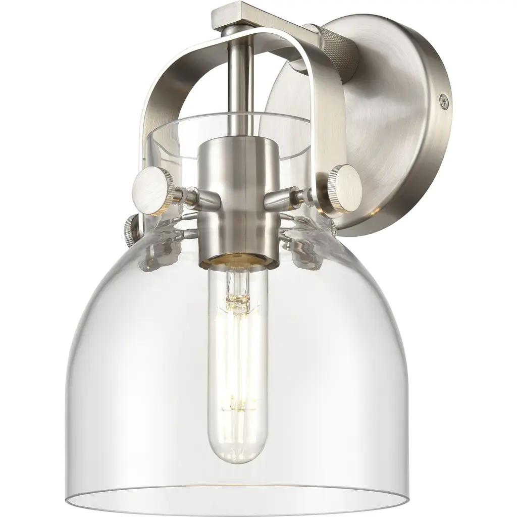 INNOVATIONS 423-1W-PC-G412-6CL Pilaster II Bell 1 6.5 inch Sconce Polished Chrome. Style: Industrial, Farmhouse, Restoration-Vintage. Collection Name: Downtown Urban. Metal Finish(Body): Polished Chrome. Material: Steel, Cast Brass, Glass. Dimension(in): 10.125(H) x 6.5(W) x 7.625(Ext). Bulb: (1)6W LED(Included). Voltage: 120. Dimmable: Yes. Color Temperature (Kelvin): 2700. Color Rendering Index (CRI): 90. Lumens: 750. Life Expectancy (Hours): 15000. Glass Shade Description: Clear Pilaster II Bell. Glass Type: Clear. Shade Shape: Bell. Glass or Metal Shade Color: Clear. Shade Material: Glass. Shade Dimension(in): 6.5(W) x 7(H). ADA Compliant: No. California Proposition 65 Warning Required: Yes. UL/ETL Certification Type: Damp Location.