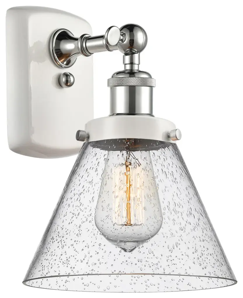 INNOVATIONS 423-1W-PN-G412-6SDY Pilaster II Bell 1 6.5 inch Sconce Polished Nickel. Style: Industrial, Farmhouse, Restoration-Vintage. Collection Name: Downtown Urban. Metal Finish(Body): Polished Nickel. Material: Steel, Cast Brass, Glass. Dimension(in): 10.125(H) x 6.5(W) x 7.625(Ext). Bulb: (1)6W LED(Included). Voltage: 120. Dimmable: Yes. Color Temperature (Kelvin): 2700. Color Rendering Index (CRI): 90. Lumens: 750. Life Expectancy (Hours): 15000. Glass Shade Description: Seedy Pilaster II Bell. Glass Type: Seeded. Shade Shape: Bell. Glass or Metal Shade Color: Seedy. Shade Material: Glass. Shade Dimension(in): 6.5(W) x 7(H). ADA Compliant: No. California Proposition 65 Warning Required: Yes. UL/ETL Certification Type: Damp Location.