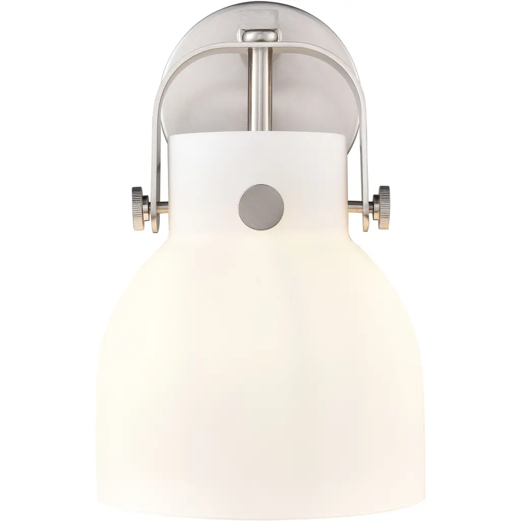 Pilaster Ii Bell Sconce Wall Light In Satin Nickel, Matte White Glass