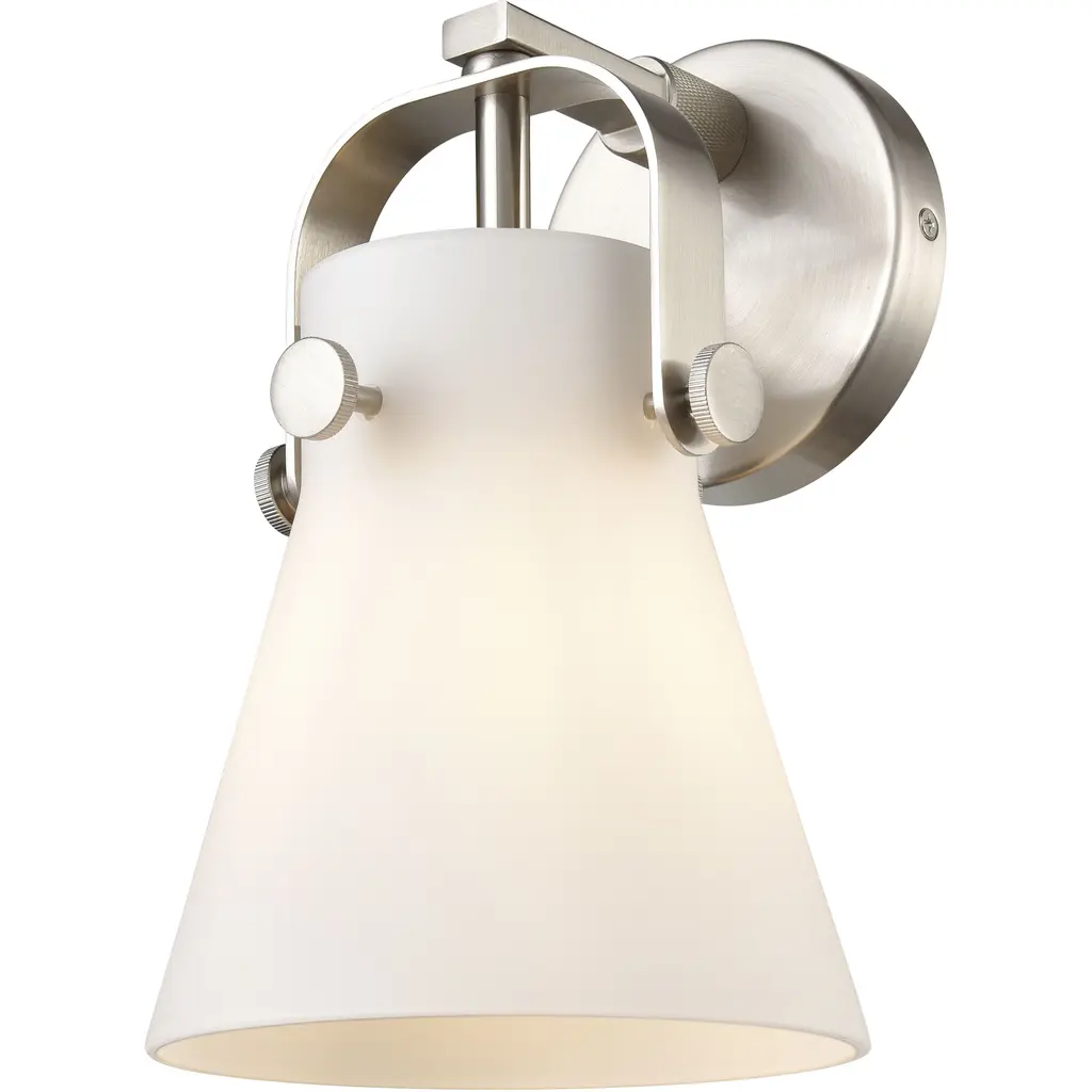 INNOVATIONS 423-1W-PC-G411-6WH Pilaster II Cone 1 6.5 inch Sconce Polished Chrome. Style: Industrial, Farmhouse, Restoration-Vintage. Collection Name: Downtown Urban. Metal Finish(Body): Polished Chrome. Material: Steel, Cast Brass, Glass. Dimension(in): 10.125(H) x 6.5(W) x 7.625(Ext). Bulb: (1)6W LED(Included). Voltage: 120. Dimmable: Yes. Color Temperature (Kelvin): 2700. Color Rendering Index (CRI): 90. Lumens: 750. Life Expectancy (Hours): 15000. Glass Shade Description: White Pilaster II Cone. Glass Type: Frosted. Shade Shape: Cone. Glass or Metal Shade Color: White. Shade Material: Glass. Shade Dimension(in): 6.5(W) x 7(H). ADA Compliant: No. California Proposition 65 Warning Required: Yes. UL/ETL Certification Type: Damp Location.