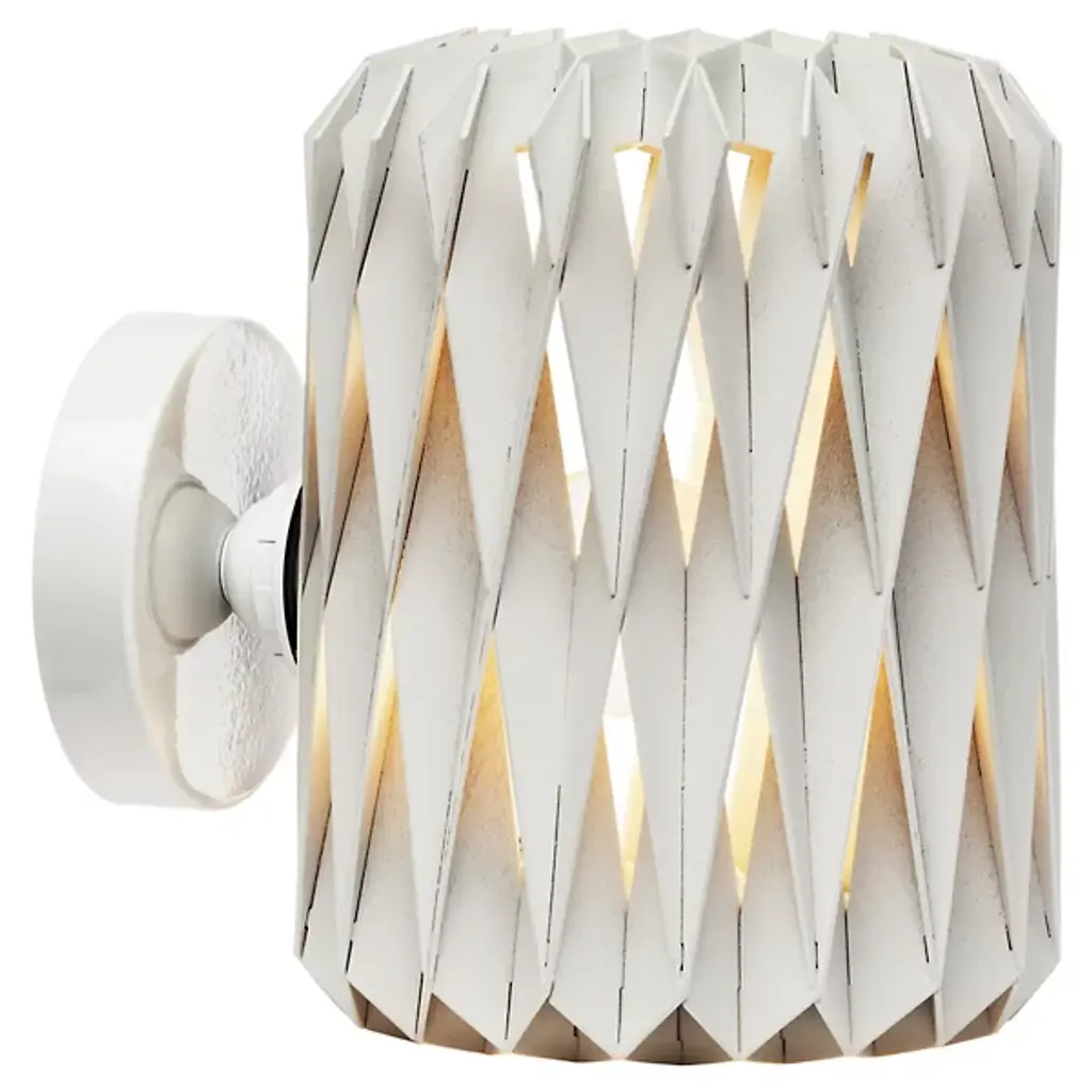 Improve your indoor wall spaces with the exacting form and delightful lines of the Pilke 18 Wall Sconce from Pilke Lights. It’s an elegant and angular design from the mind of industrial designer Tuukka Halonen and built by artisan’s hands in Finland. It relies on a metal disc wall plate to suspend a single lamp inside a geometrically designed shade of interlocking plywood strips with small gaps left for ambient light. Pilke is Finnish for “Twinkle,” while the light that trickles out through the shade’s small gaps explains the name.