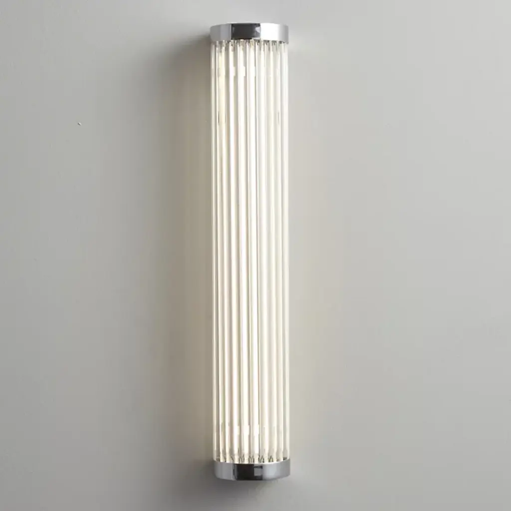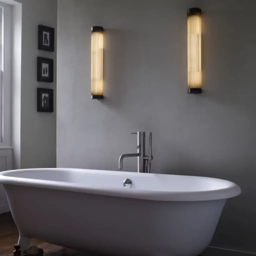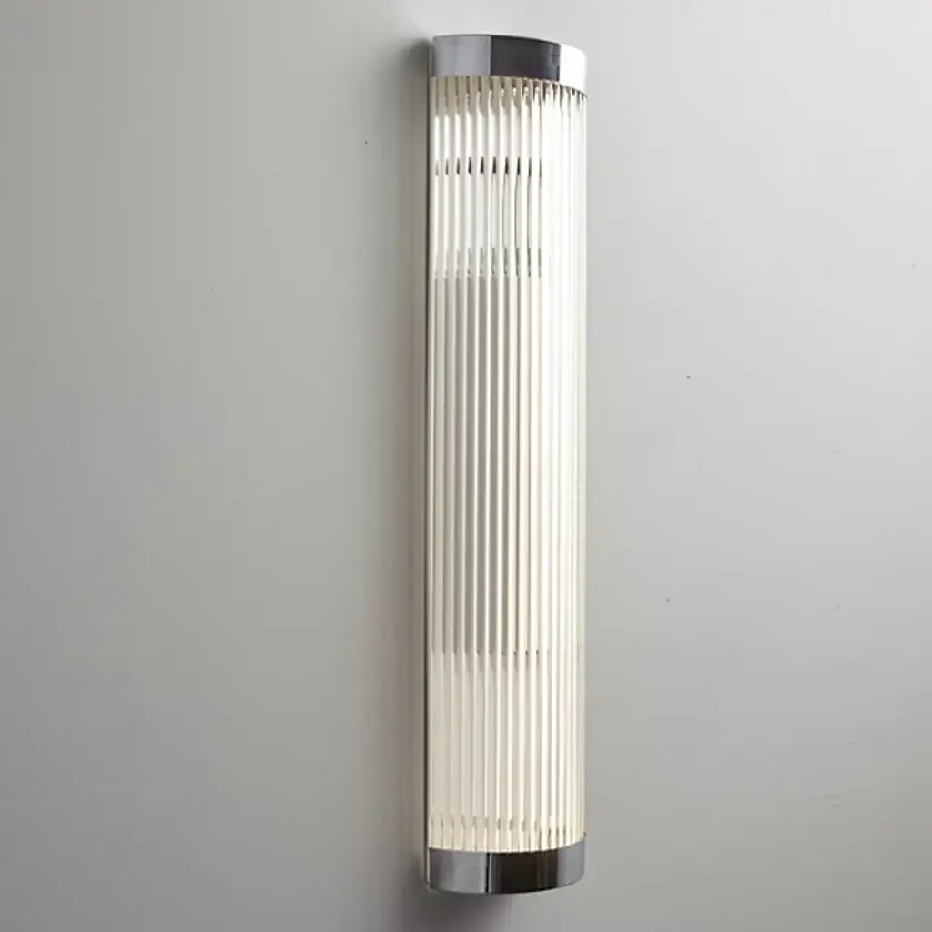 The Original BTC lighting Pillar LED Bath Bar is a departure from Davey Lighting’s more industrial range of designs, featuring a glamorous fluted glass shade with warm LED light. Chrome-plated fittings hold the closely bundled rods together in a cylindrical formation, perfectly shielding the location of the LEDs inside while creating a comforting source of ambient light.